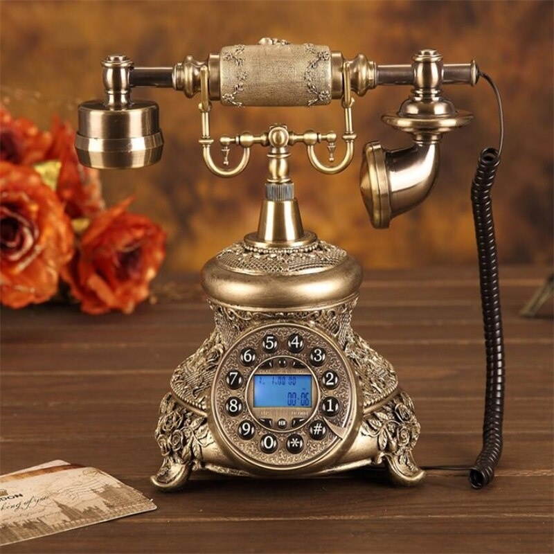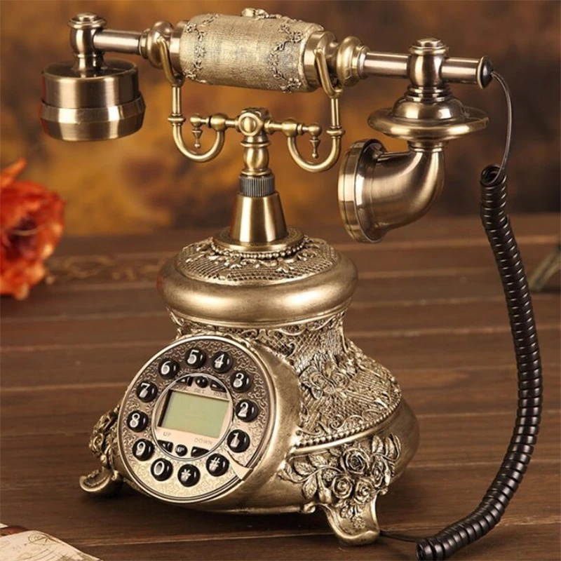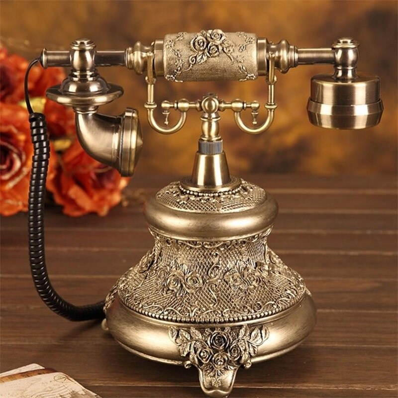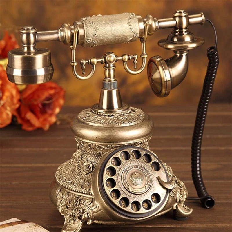 Buy Antique Golden Corded Telephone Retro Vintage Rotary Dial Fixed Telephone Phone with Redial Hands-free Home Office Decoration in United States - Cartnear.com
