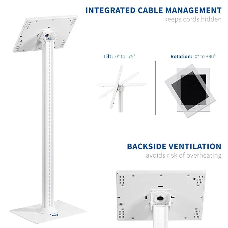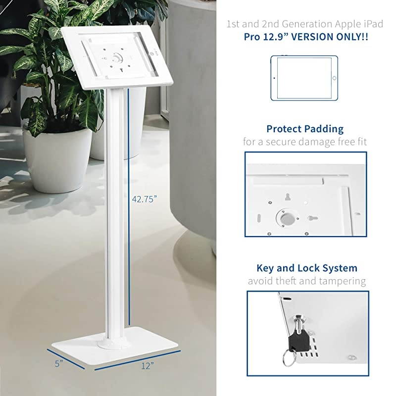 ***** **********Best Quality Guranteed. *****ANTI-THEFT KIOSK for 1st and 2nd Generation Apple iPad Pro 12.9 VERSION ONLY!! Display iPad securely in public display areas with tamper proof key and lock system*****SOLID CONSTRUCTION made of high grade steel & aluminum and supported with a heavy-duty 15x12 base for sturdy balance in high traffic areas. Product weighs 21.3 lbs*****ANGLED TILT & ROTATION for instant portrait or landscape positioning. Bolts can be tightened or loosened with the provided hex tool for tilt fluidity. Cable management runs down the side of the pole for hiding charging cables and more*****SAFETY CASE FEATURES include protective inside padding, backside ventilation to avoid overheating, and accessible or inaccessible home button options*****WEVE GOT YOU COVERED - Sturdy steel design is backed with a 3 YEAR MANUFACTURER WARRANTY and friendly tech support to help with any questions or concerns