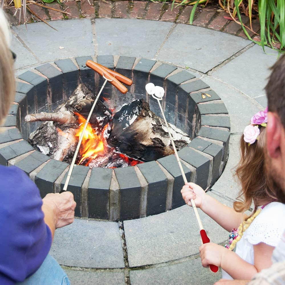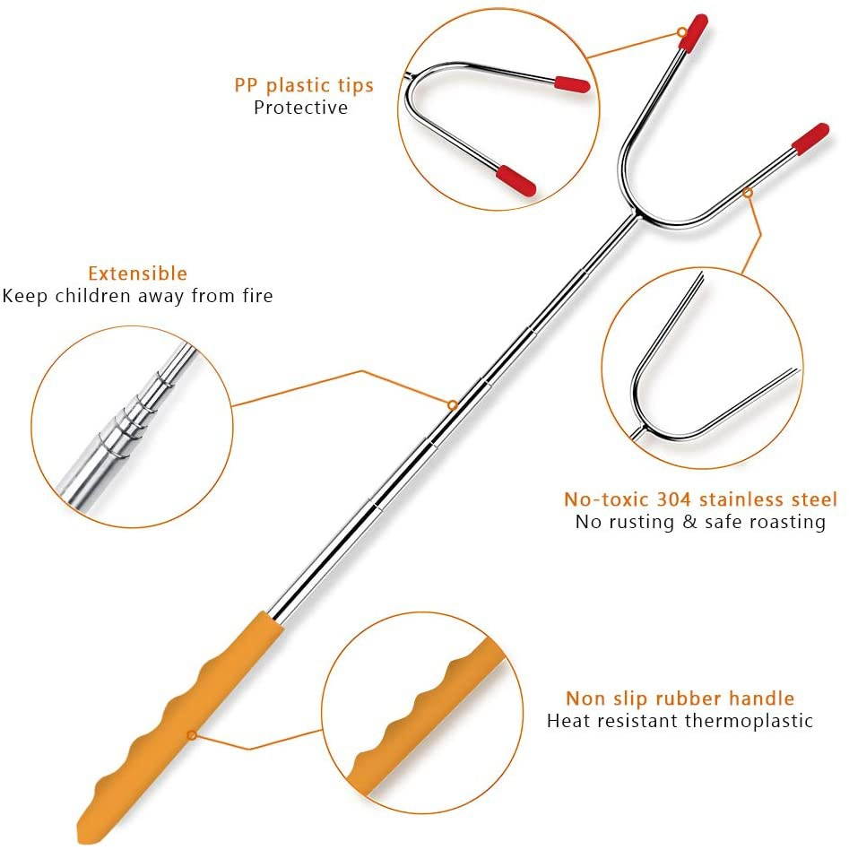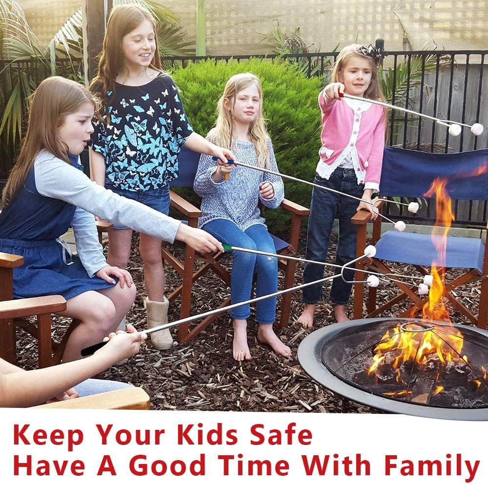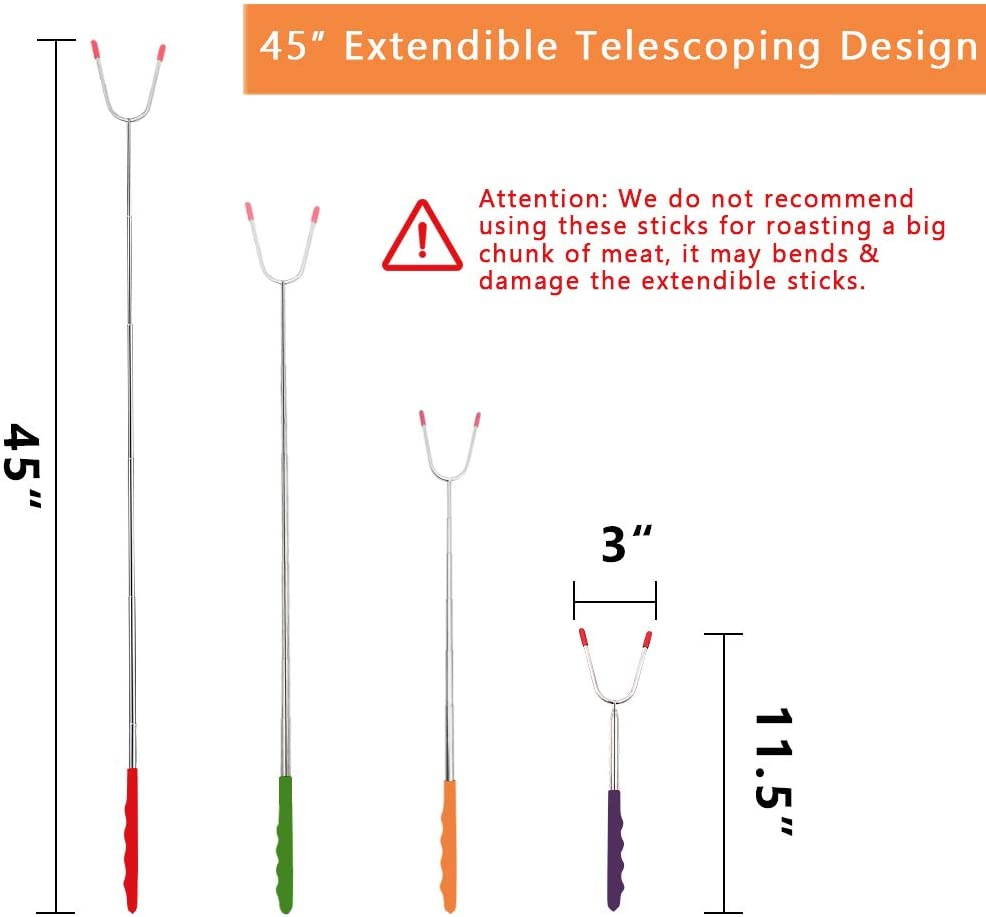- KEEP YOUR KIDS SAFE - 45" long retractable marshmallow roasting sticks free to adjust the length. Keep children away from the fire pit or campfire. Each fork comes with two mini red safety caps to avoid accidental poking while carrying them along. The perfect distance between the forks for the best roasting results. Roasting sticks are best for you and your kids!