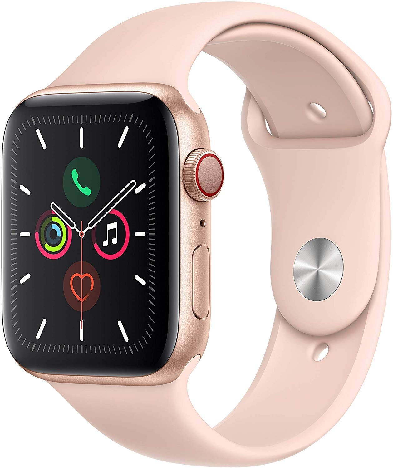 Apple Watch Series 5 has a display that's always on, showing the time and important information-no need to raise your wrist. It helps you navigate with the built-in compass. Enables international emergency calling. Lets you check on your heart with the ECG app. Tracks your workouts and activity. And has cellular built in, so you can stay connected with just your watch.
