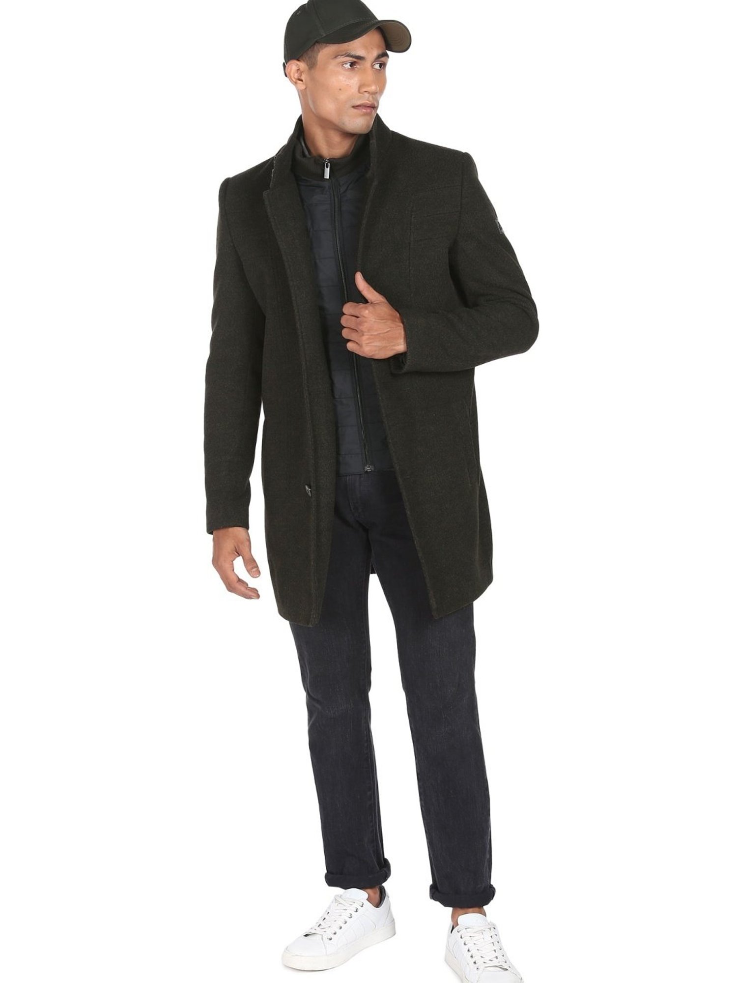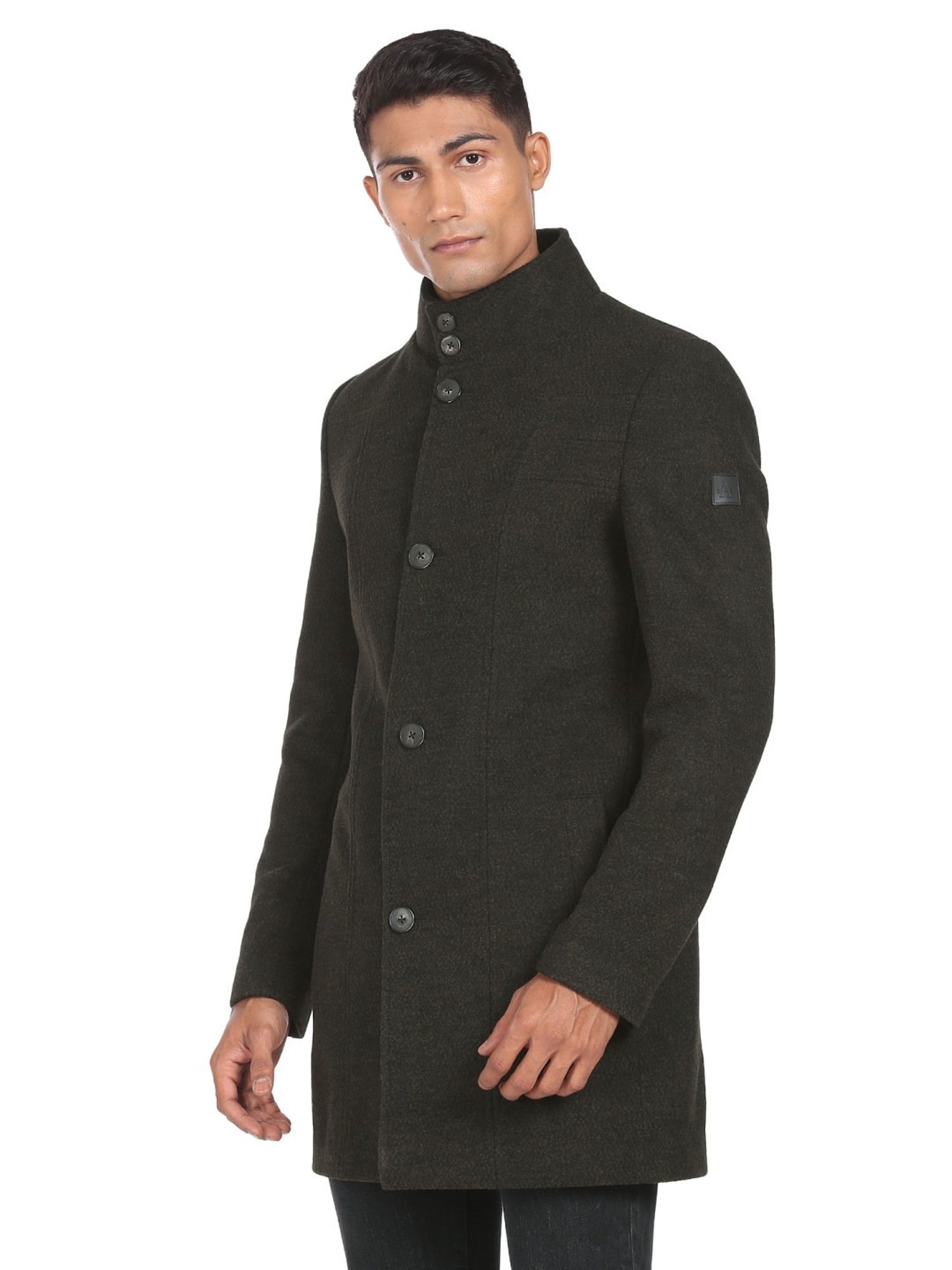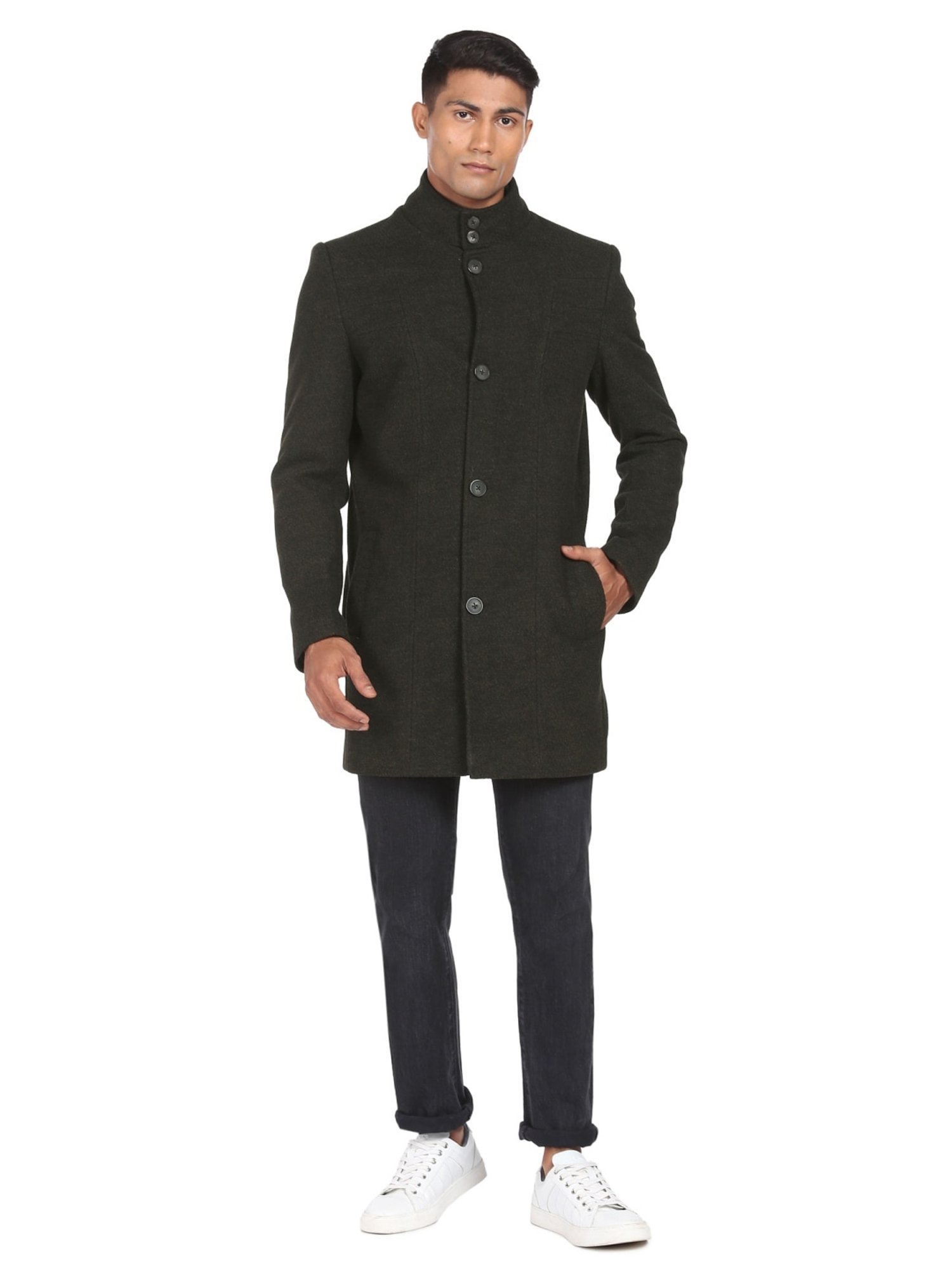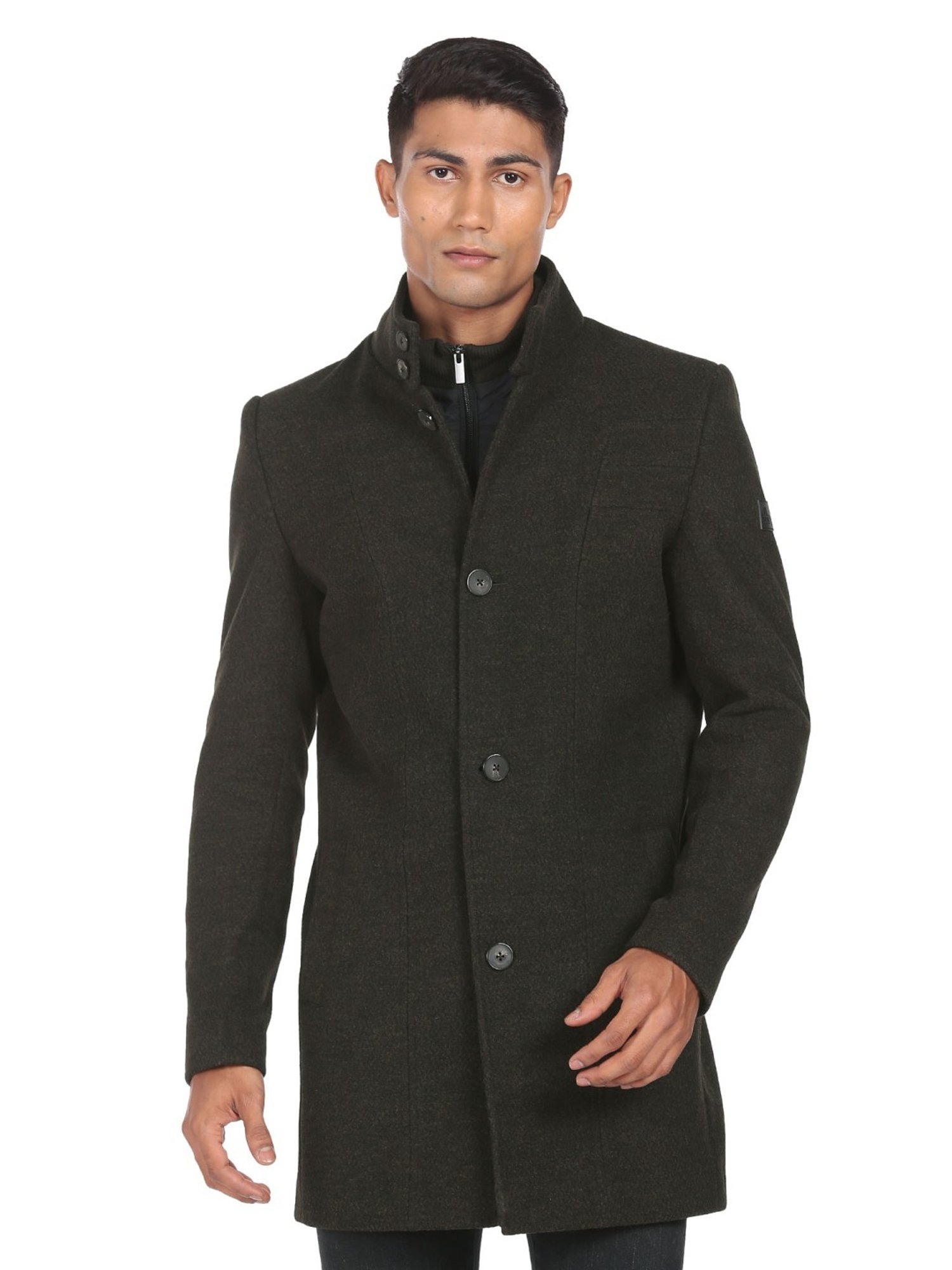 Hit the roads in style by wearing this green waistcoat from . Tailored to sartorial perfection from premium quality fabric, it assures a soft and soothing touch against the skin. The mandarin collar augments its design. Exuding full sleeves, it is sure to fetch you compliments from all. The textured pattern makes it a wardrobe classic.