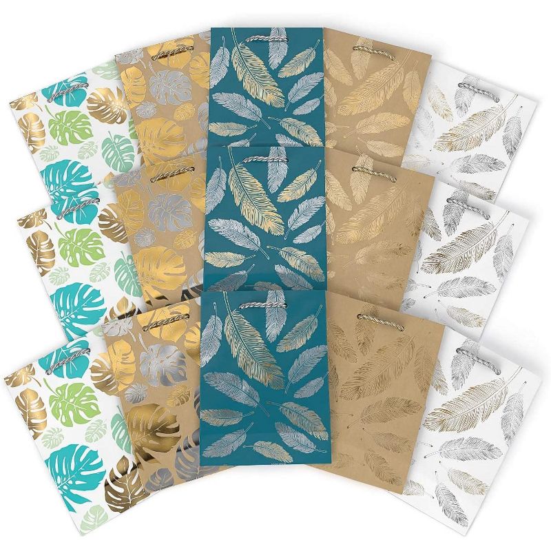 Heavyweight Paper - Made of thick, durable, paper in blue, white, and kraft paper. Versatile Designs - Festive and elegant designs that work for any occasion. Sturdy Rope Handles - Each handle is made of two pieces of soft, thick cord that is comfortable and durable. Gift Tags - Personalize every gift with the included matching card on the handle
