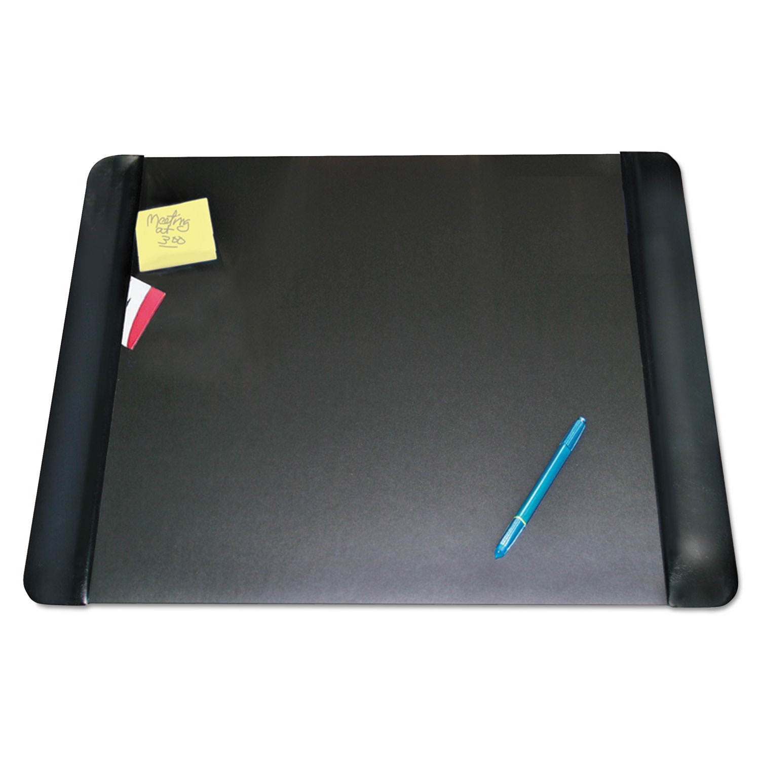 Protect your desk from scratches, stains and spills. Ergonomic desk pad enables smoother writing, while the handsome leather-like side panels provide space for cards, notes and memos. The center panel resists stains and cleans easily with water. Built-in antimicrobial agent protects the product from the growth of germs. Writing surface made from recyclable material.