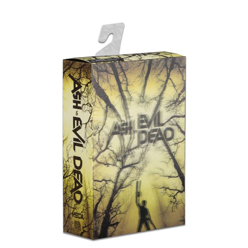 From the hit Starz TV series, Ash vs. Evil Dead! The series follows Ash, stock boy, aging lothario and chainsaw-handed monster hunter who spent 30 years avoiding responsibility, and the terrors of the Evil Dead. NECA has given Ash the Ultimate action figure treatment—he comes with four interchangeable head sculpts, chainsaw, mechanical hand, wood hand, hand stump, photo of his car, and shotgun that fits in a back holster… Everything he needs to fight a plague of Deadites. The 7” scale figure is highly articulated and comes in collector-friendly deluxe window box packaging with opening flap and bonus lenticular cover.