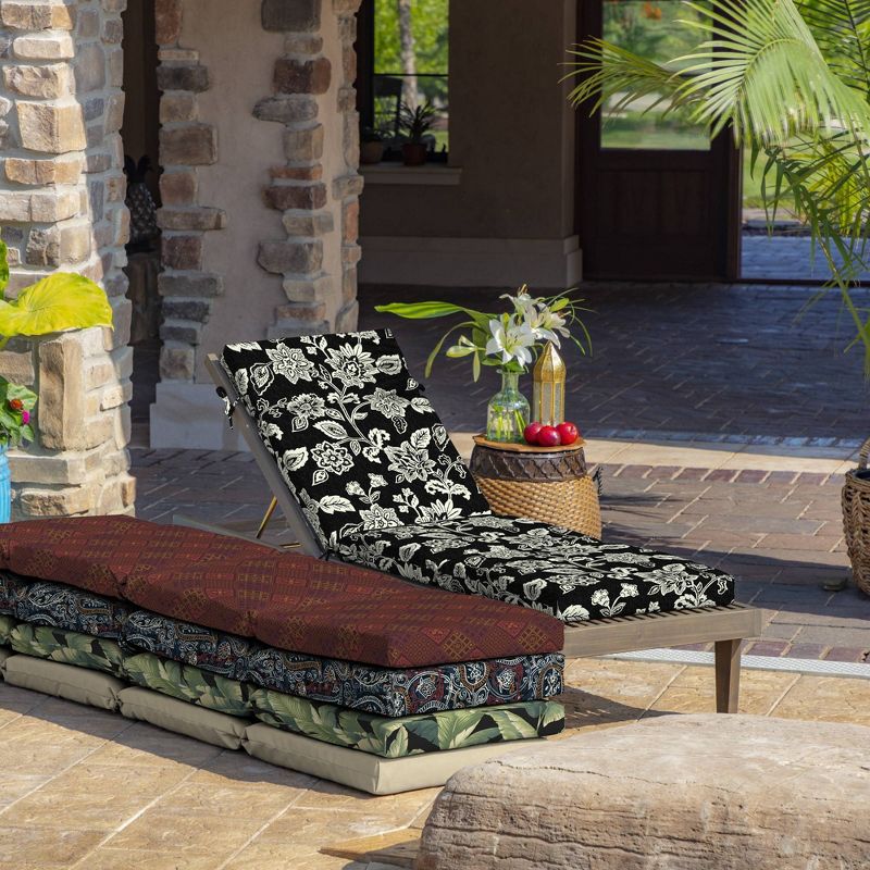 The Ashland Jacobean Cartridge Chaise Cushion from Arden Selections is the perfect addition to your chaise lounge, whether you're relaxing poolside, soaking up some sun or reading your favorite book in the shade. This cartridge outdoor chaise cushion adds extra comfort to your outdoor space with its padded seat and high back cushion that features sewn-in partitions for extra comfort, while the rich Jacobean pattern in black and white offers traditional charm. Plus, this outdoor patio cushion is designed to withstand the elements with weather-resistant fabric, making it perfect for lounging anytime of the year.