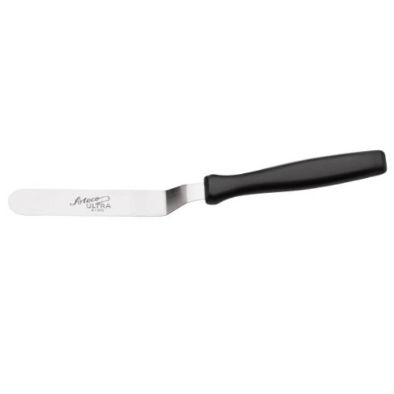 The ideal tool for icing cakes; also used by chefs as a spatula for turning foods in skillets. The offset, premium-quality blade ensures maximum flexibility. The handle provides exceptional grip and feel even with greasy hands.