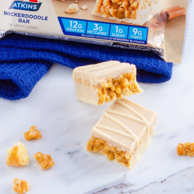 The light and crispy texture, paired with the flavors of rich cinnamon and baked cookie, make this bar one of a kind. Stay satisfied and keep your energy steady with 12 grams of protein and 9 grams of fiber per bar. Made with real almond butter and B vitamins, each bar has 3 grams of net carbs and 1 gram of sugar for a guilt-free addition to low carb and keto friendly* lifestyles. *When used with Atkins ketogenic programs