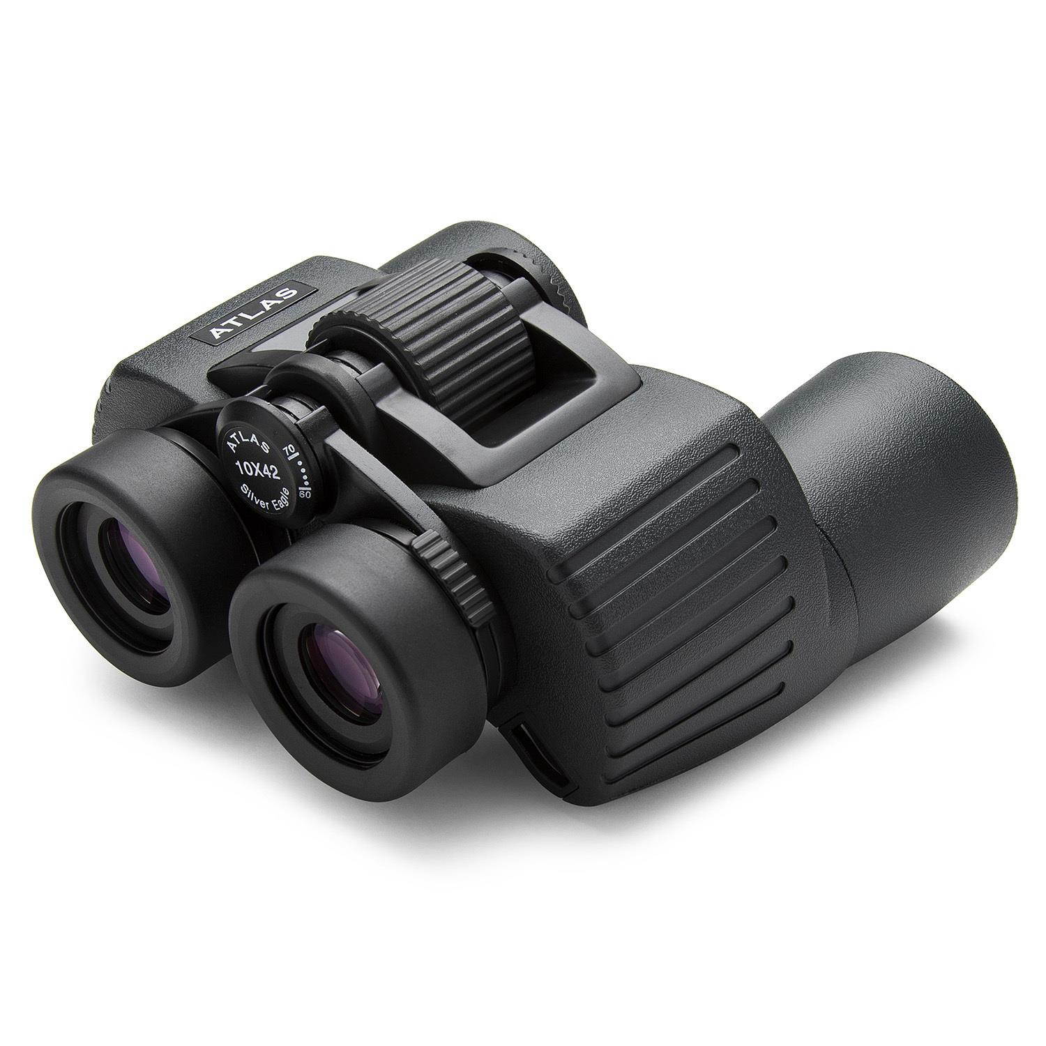 The Atlas Optics Silver Eagle 10x42 Binoculars were designed for the vigilant bird watcher, avid outdoorsman, or passionate hunter to be the only pair of binoculars you’ll ever need. Sporting fully multicoated optics that increase light transmission that combine with the phase-corrected roof prisms, these binoculars are a great choice for any situation rain or shine. The Silver Eagle Binoculars feature better center focus and resolution in a robust rubber armored housing. Built to keep pace with any outdoor explorer, these compact binoculars are lightweight and easy to carry through any terrain. Superior Optics The Atlas Optics Binoculars feature fully multi-coated lenses which increase light transmission with multiple anti-reflective coatings on all air-to-glass surfaces. Phase Corrected roof prisms enhance the binocular's resolution and contrast. The objective lenses have a diameter of 42mm and can magnify up to 10 times the normal view. Completely Protected The Atlas Optics Silver Eagle 10x42 Binoculars are housed in a durable rubber armored body designed to protect you and your optical equipment. The 10x42 binoculars are fogproof and weather resistant to last through anything life throws at you. A large center focus wheel and twist-ip rubber eycups and diopter give you unprecedented control so you can perfectly locate and track your subject.
