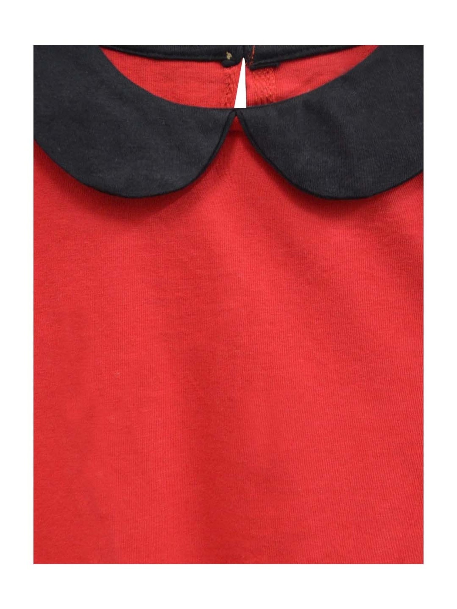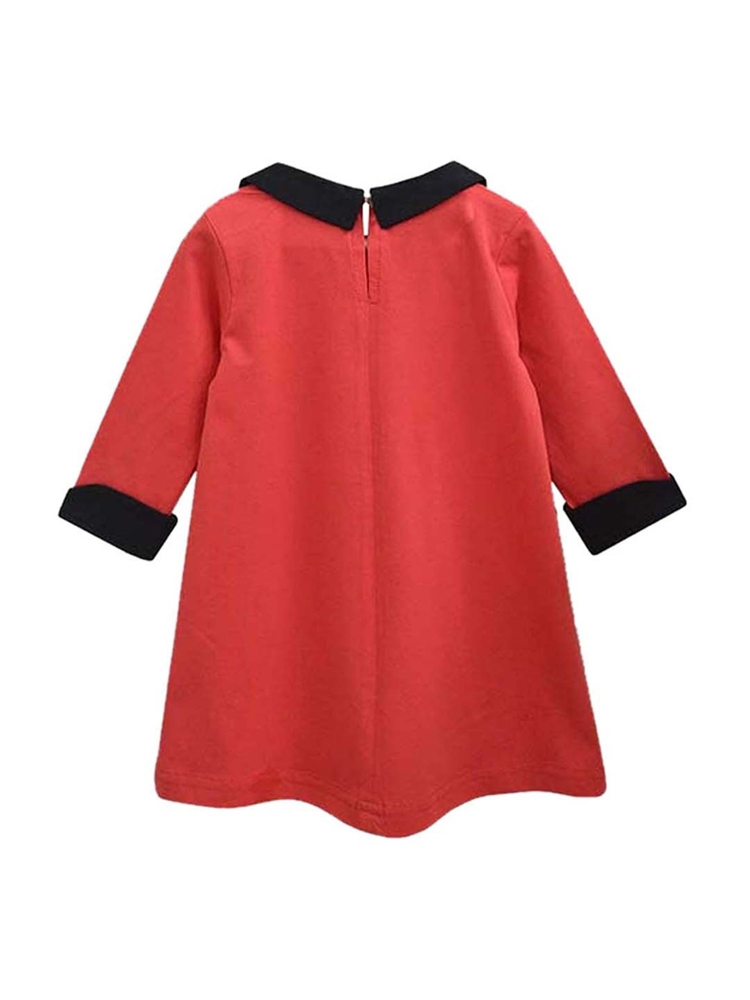 Bestow your little one's ensemble a final touch with this red and black dress from A.T.U.N. Kids. The peter pan collar adds to its appeal. Featuring three-fourth sleeves, it will surely impress everyone. It has been crafted with care using 100 percent cotton fabric which feels soft on the skin. Your kid can team it with a pair of sunglasses to complete the cute look.