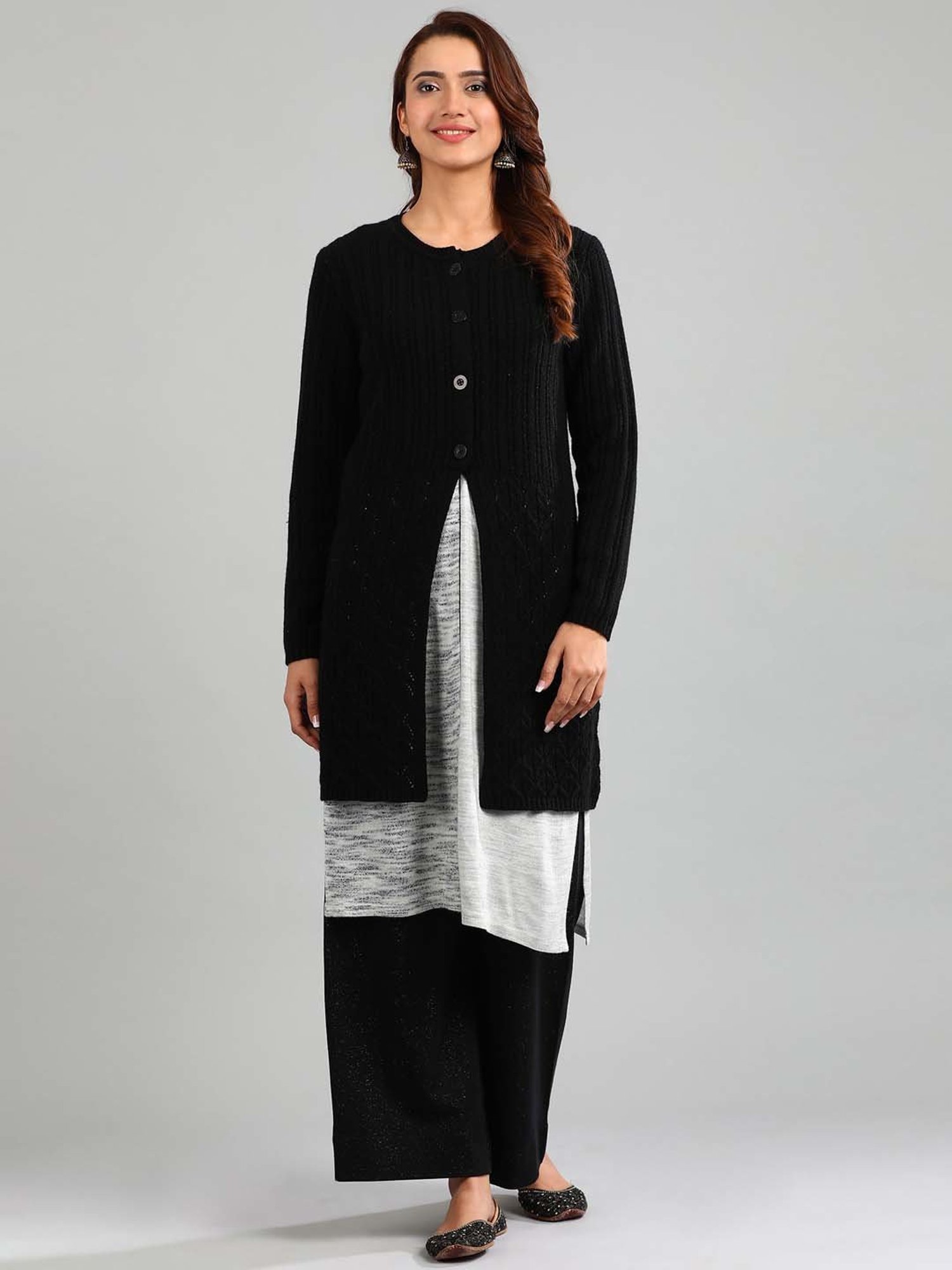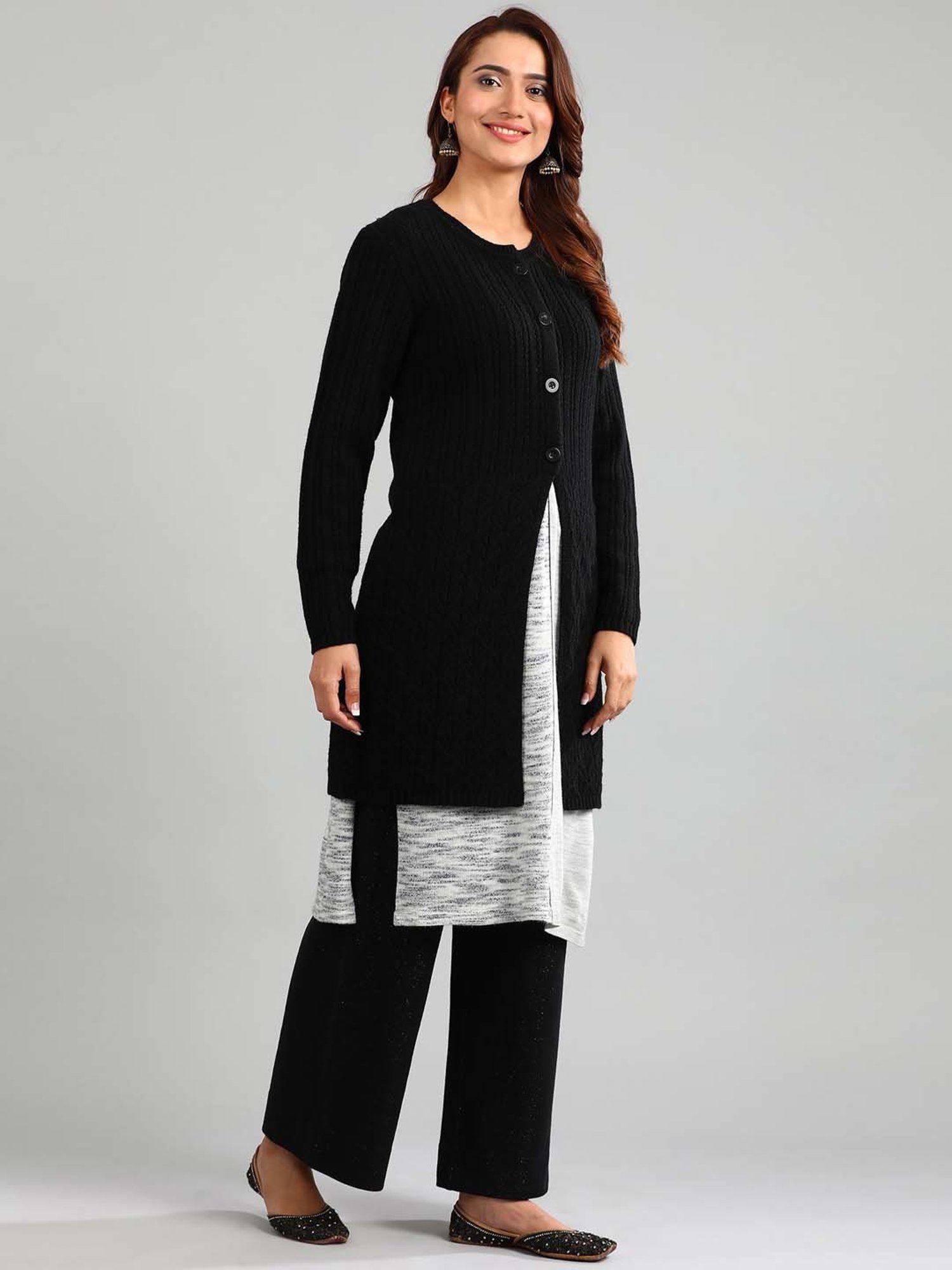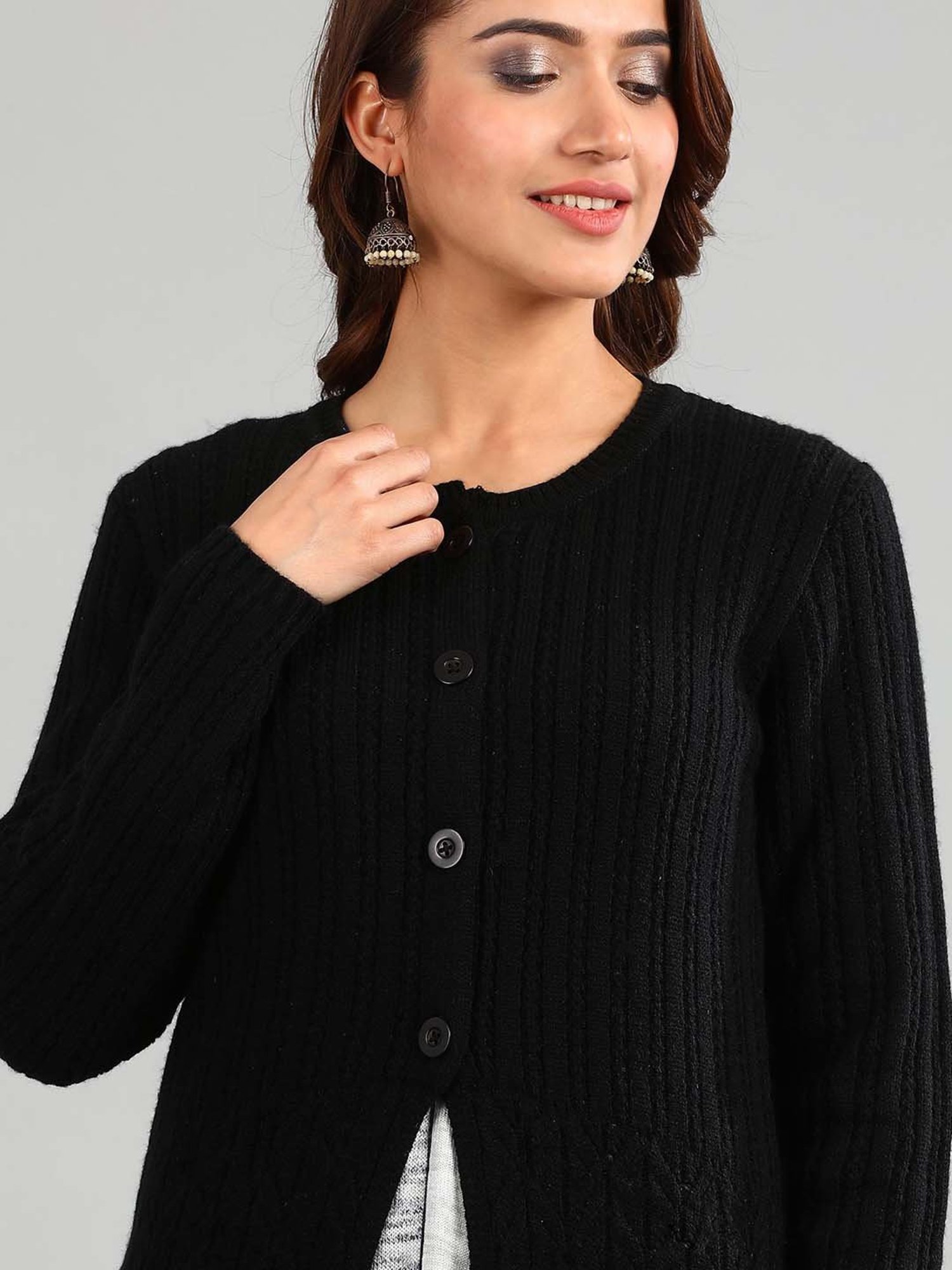 Keep your winter look simple yet stylish by wearing this black sweater from Aurelia. The round neck adds to its appeal. Exuding full sleeves, it is sure to fetch you compliments from all. Club it with a pair of jeans and high heels to fascinate one and all.