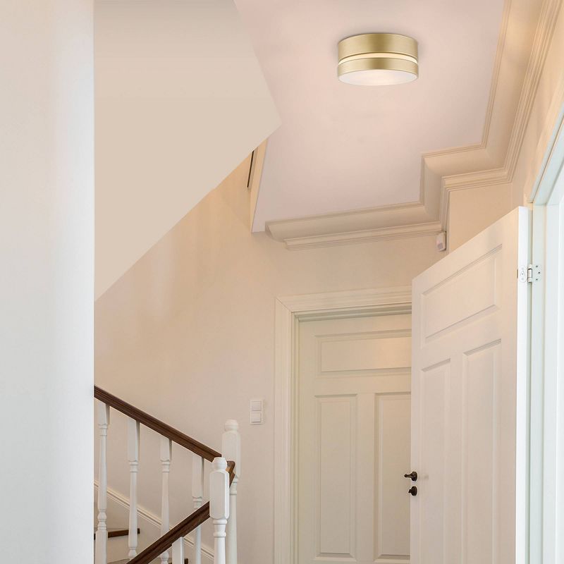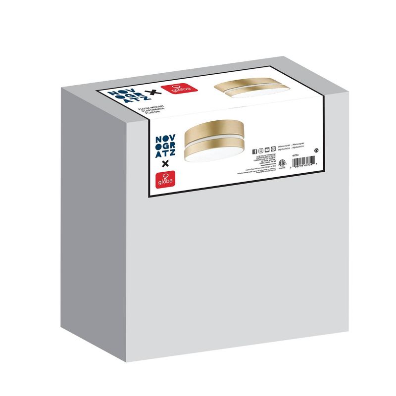 Statement lighting doesn't always mean being the center of attention. Minimalist modern flush mount lighting unobtrusively hugs the ceiling but can be just as striking as center-stage chandeliers and pendants. There are many different versions of spectacular ceiling lights but none stand out as much as the Novogratz x Globe Aurora Flush Mount Ceiling Light. With a modern Smithfield design - a grand yet shallow rounded body - this flush mount produces a halo of filtered light that is perfect for an entryway or bedroom. The soft gold finish adds a playful glam flair to your space yet the frosted shade softens the entire look. Decorate with the Novogratz and Globe Electric - lighting made easy.