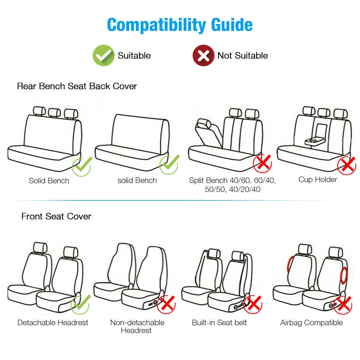 Includes 3: One Rear Split Bench Seat Cover