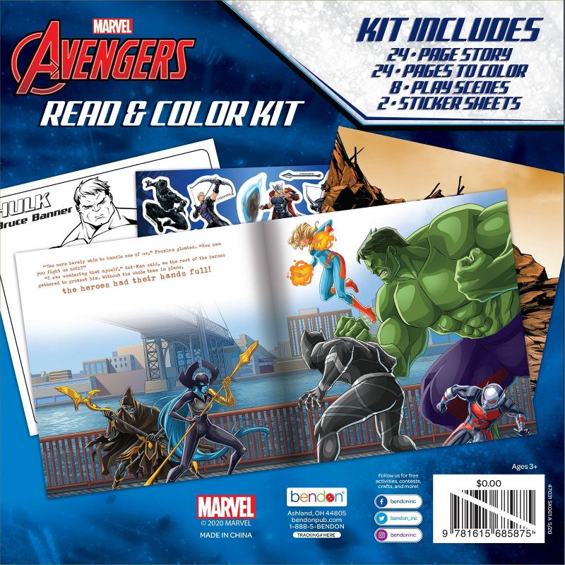 Get your little artist ready to read, color, sticker, and play with Bendon's Avengers Read and Color Kit! This kit contains multiple creative play patterns in a sturdy case with Velcro closure that's perfect for fun on the go!