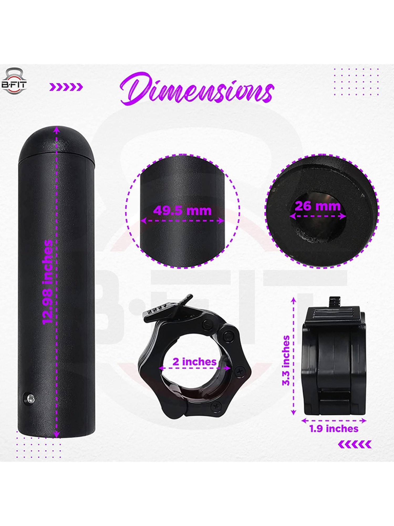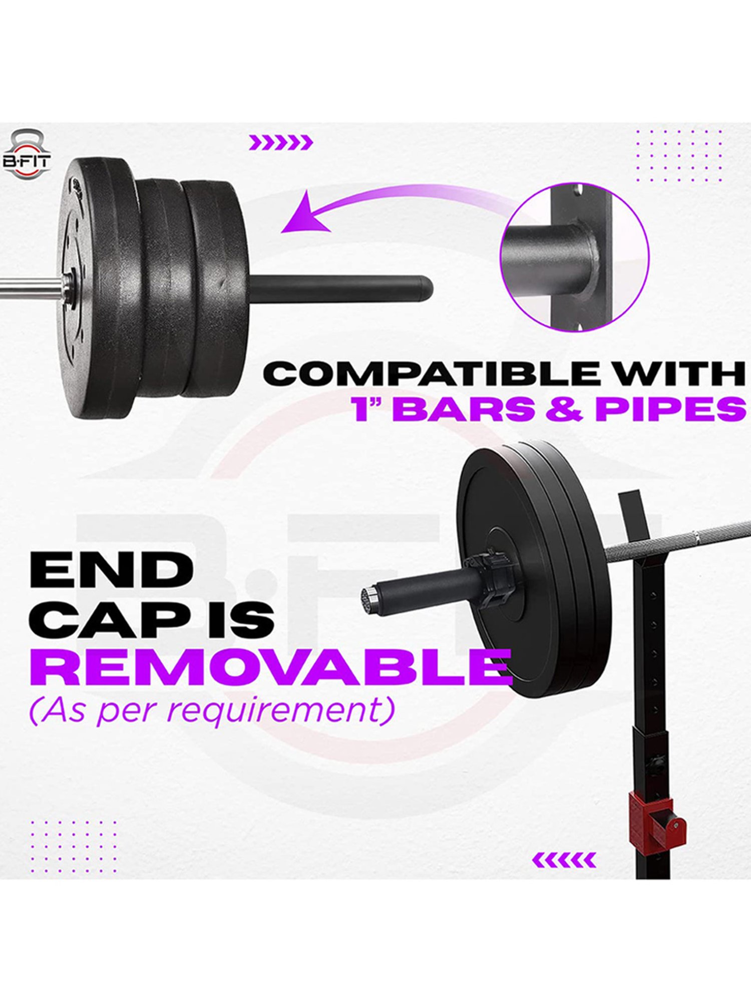 These black Olympic adapter sleeves from B Fit include 2 Allen keys to tighten and loosen the metal hex nut. It is made from heavy-duty and high-quality plastic with a metal hex bolt. The end cap is removable for use longer than 1 inches standard posts. Turn your 1 inch standard barbell or weight post into a 2 inch Olympic weight bar or weight post. It is great for older-style barbells, curl bars and plate-loaded weight machines. It has a length of 15 cm, breadth of 15 cm, height of 10 cm and weight of 800 gm. Primary Ingredients: Other Ingredients: