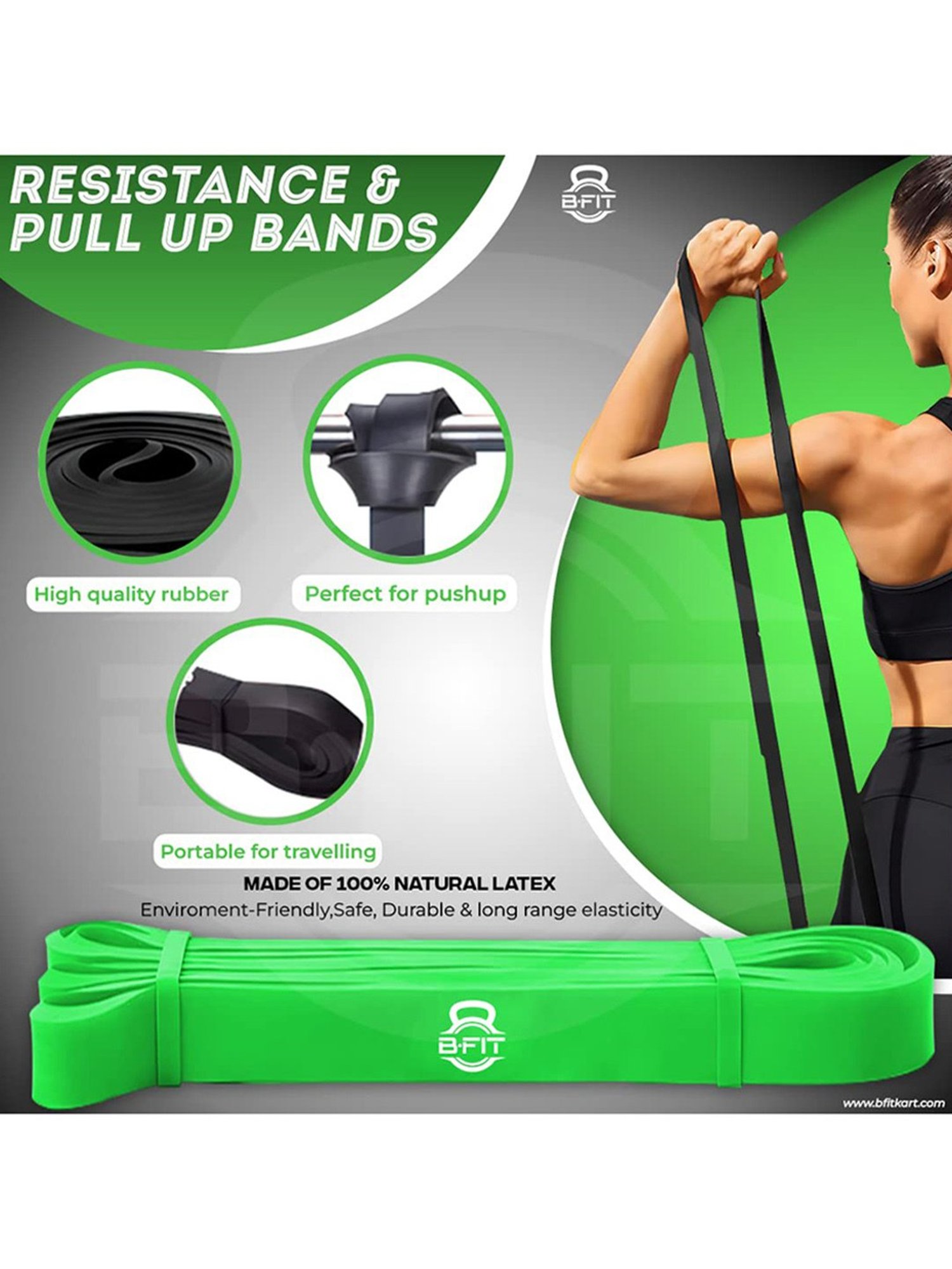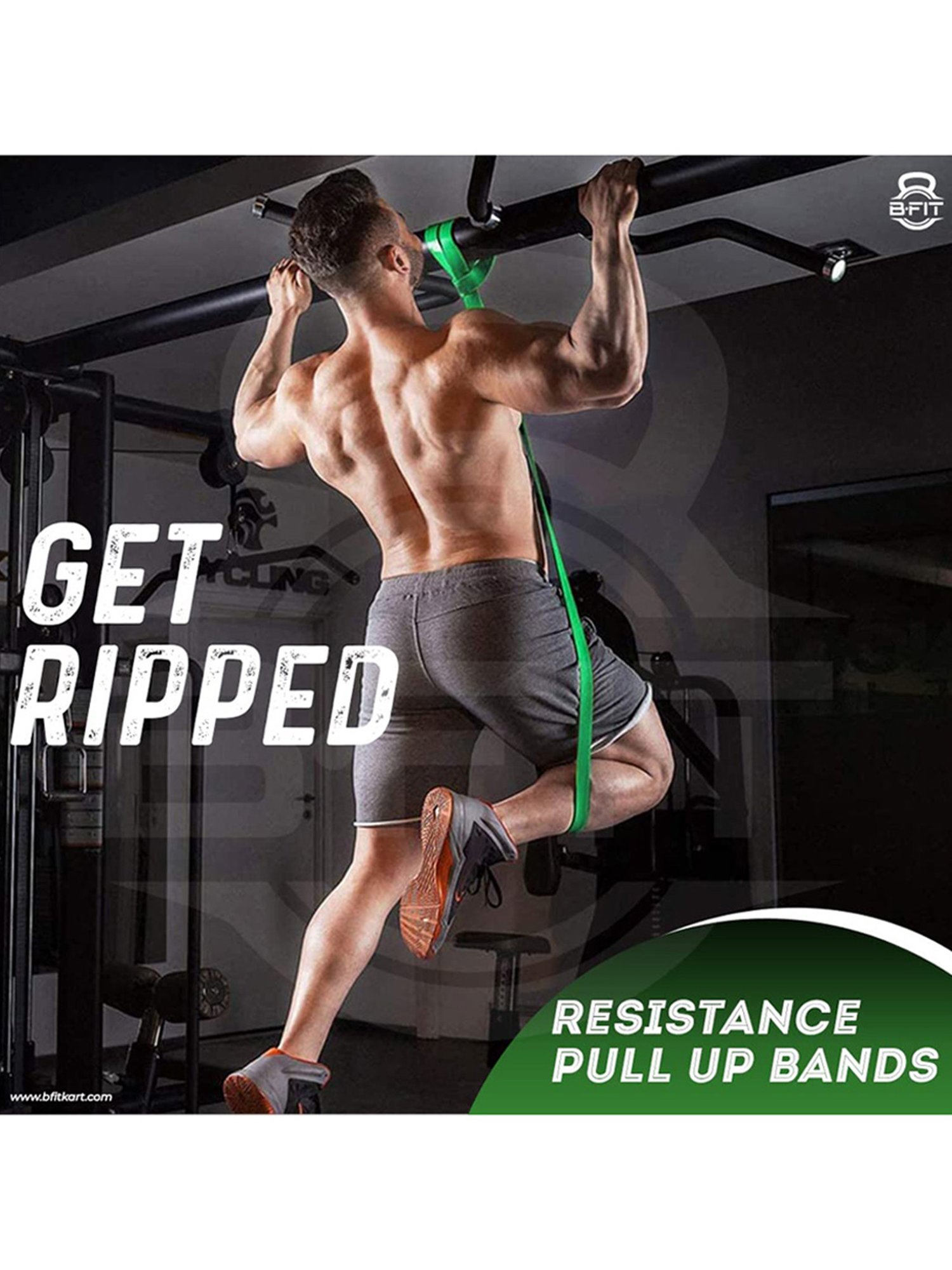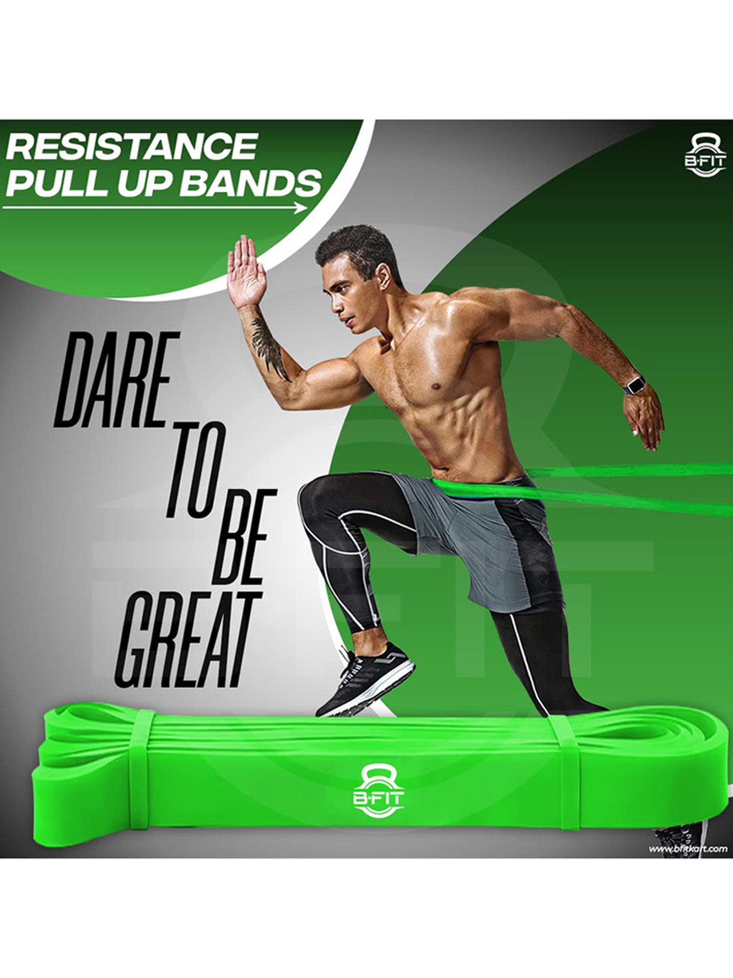 This green pull up bands from B Fit is crafted from natural rubber. It has 4 different resistance levels. It is a perfect tool to help you with your pull ups, dips or muscle-ups. It has a length of 10 cm, height of 5 cm, breadth of 10 cm and weighs 300 gm.