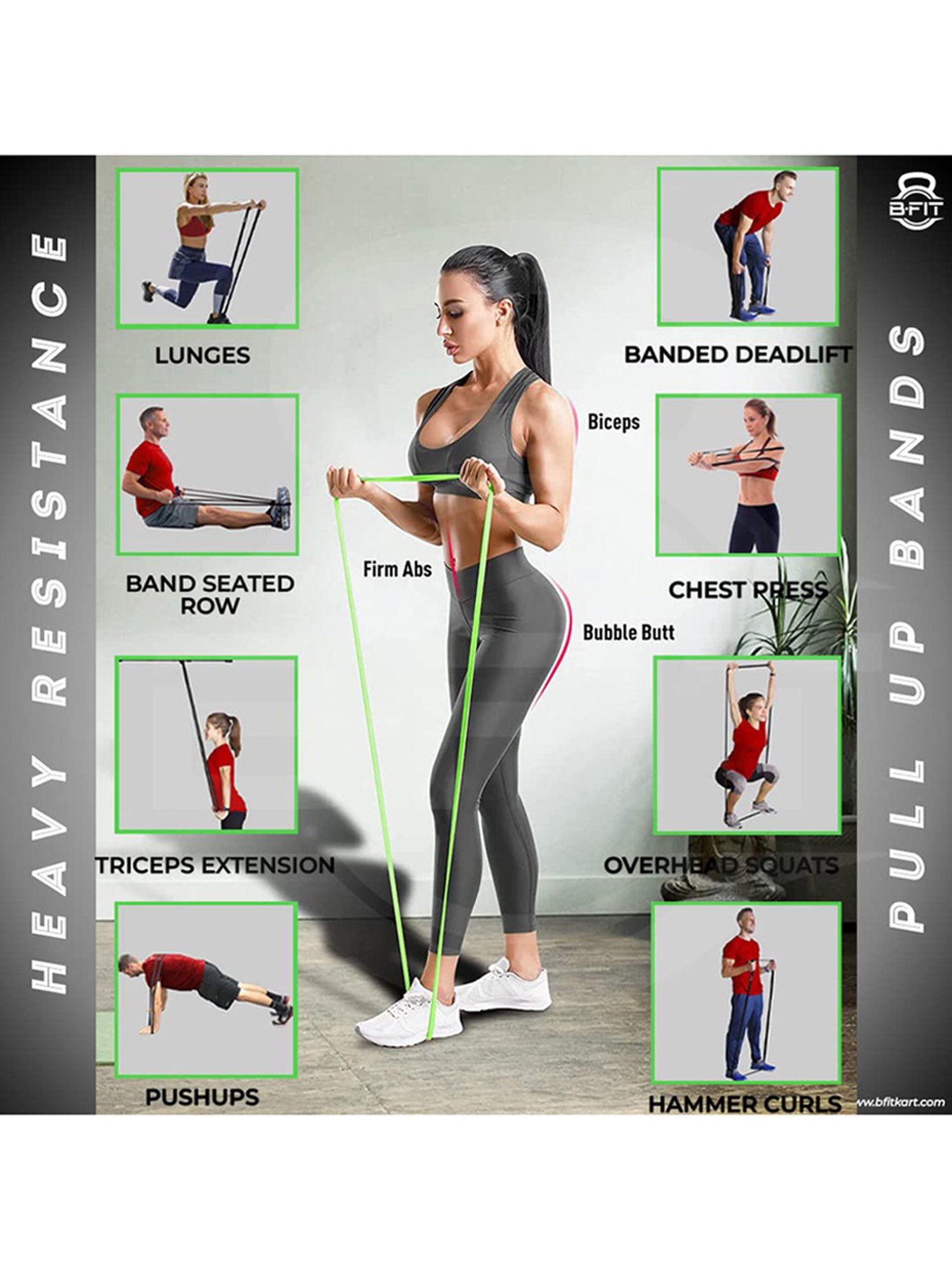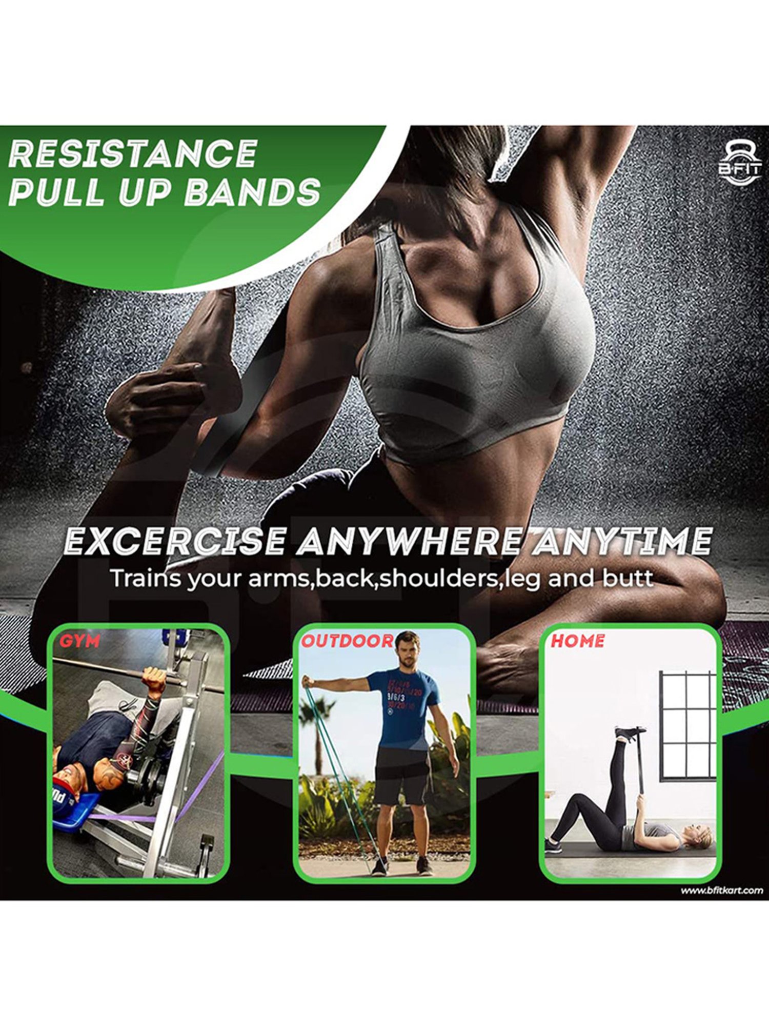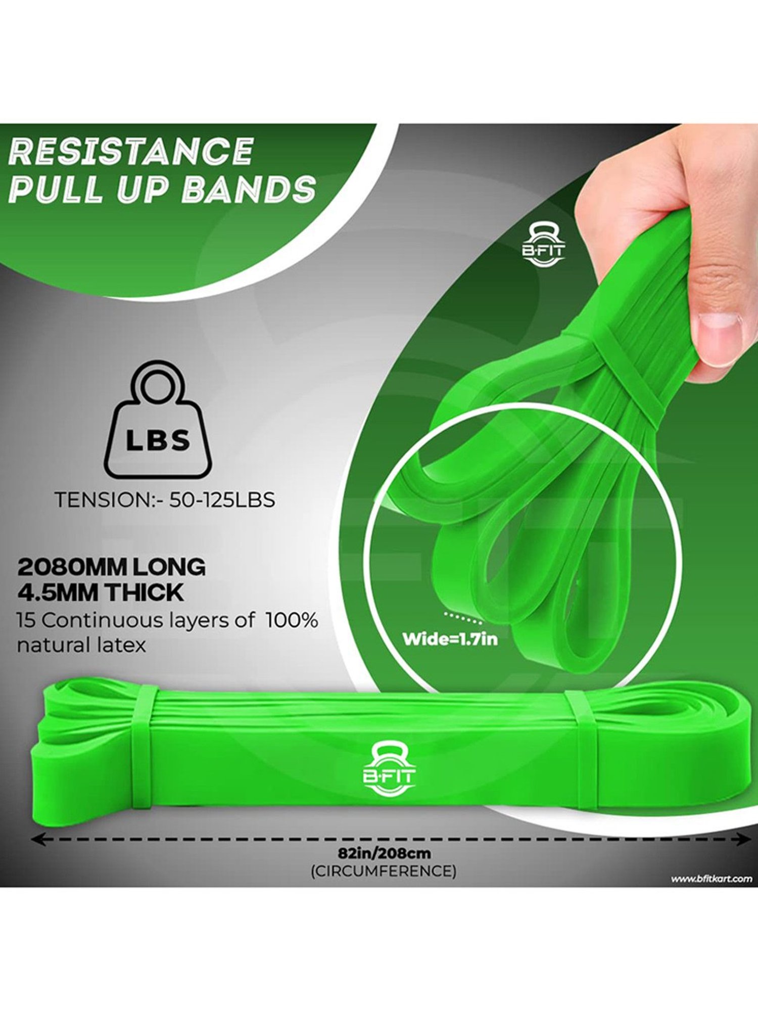 This green pull up bands from B Fit is crafted from natural rubber. It has 4 different resistance levels. It is a perfect tool to help you with your pull ups, dips or muscle-ups. It has a length of 10 cm, height of 5 cm, breadth of 10 cm and weighs 300 gm.