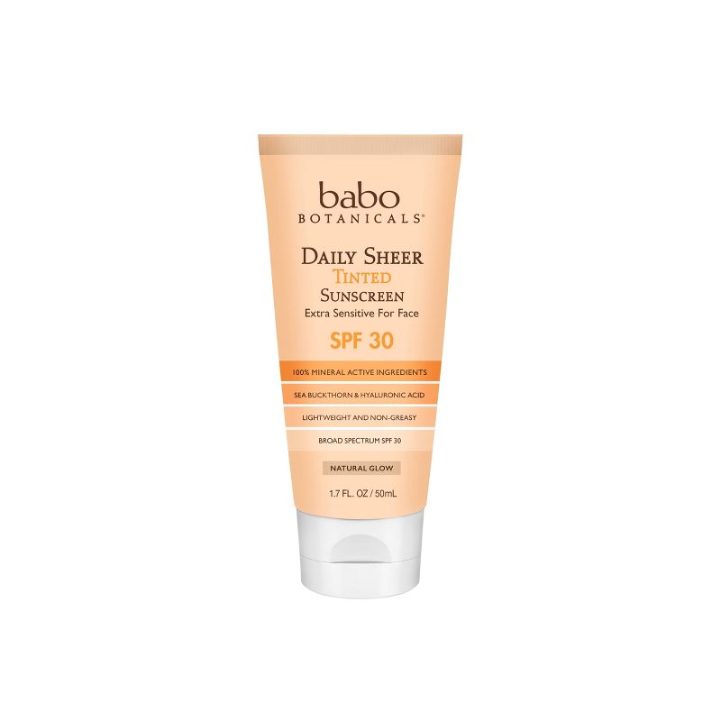 Daily Sheer Tinted Sunscreen in Natural Glow is the perfect protection for every day wear. Ultra sheer, lightweight, clean and non-greasy. This 100% mineral moisturizing sunscreen contains a Nutri-Firm™ Complex of Kahai, Sea Buckthorn, Rosehip and Argan Oil, packed with powerful Anti-Oxidants, Omegas and Vitamin C. This unique tinted moisturizer is also enriched with anti-aging hyaluronic acid. Gentle and soothing for Sensitive Skin. Allergy tested and Unscented.