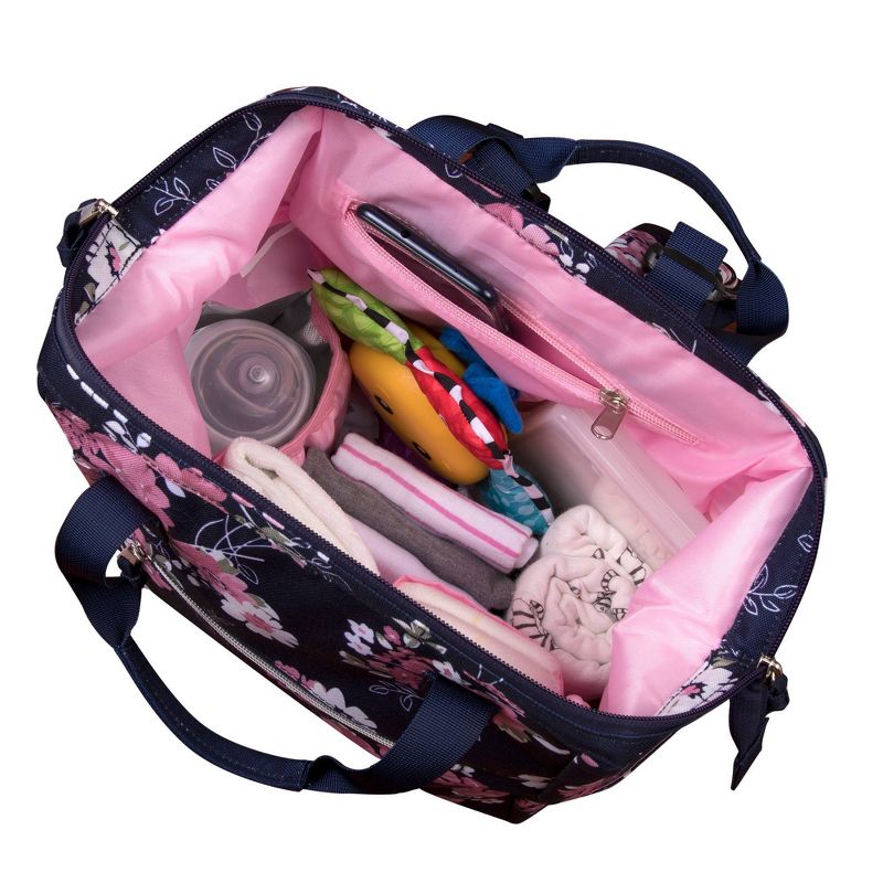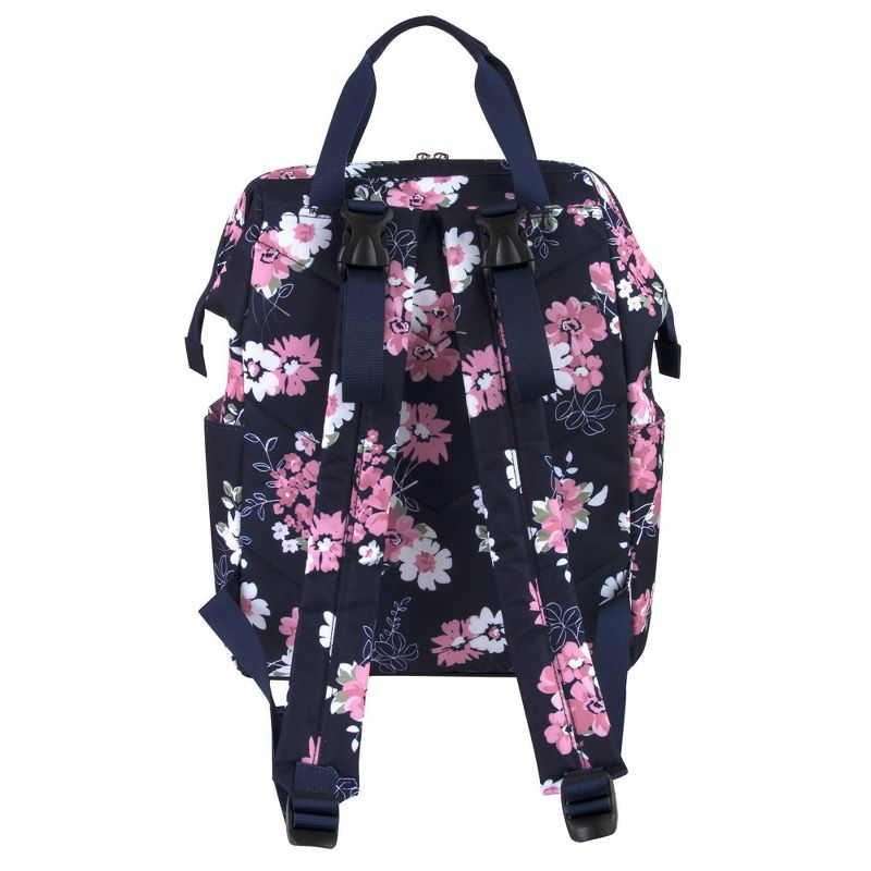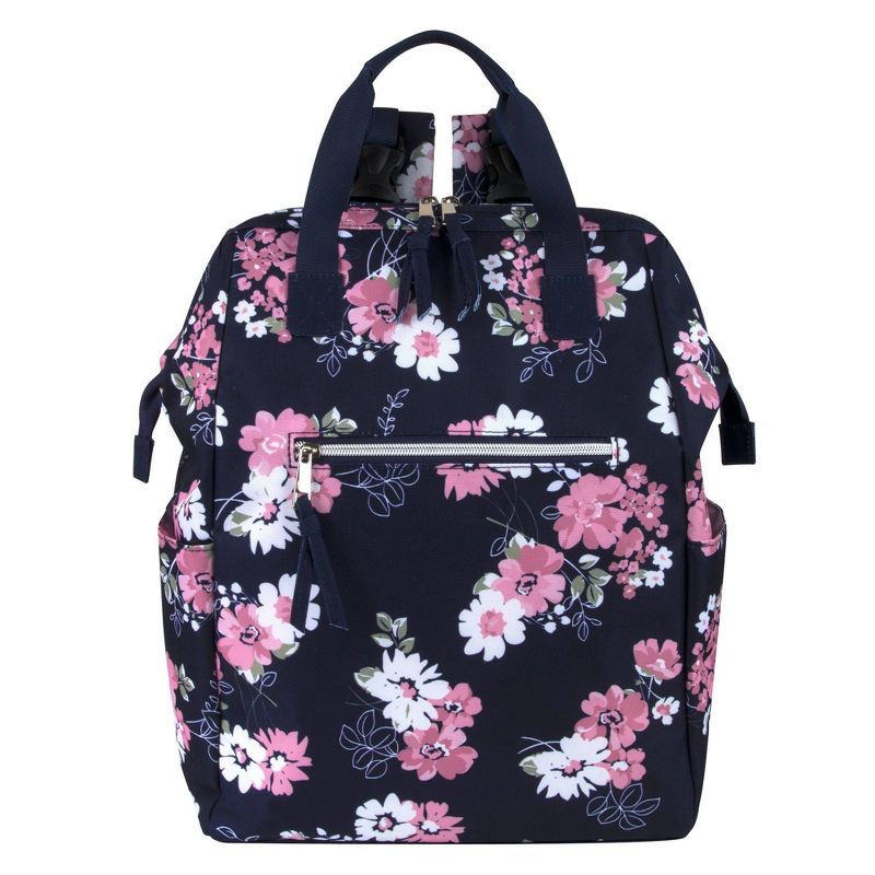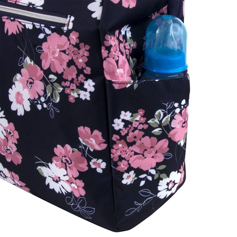 •DIAPER BAG BACKPACK WITH STROLLER STRAPS: Modern diaper bag with flowers is pretty & functional, providing tons of organizing pockets needed to have your very own diaper duty changing kit on the go