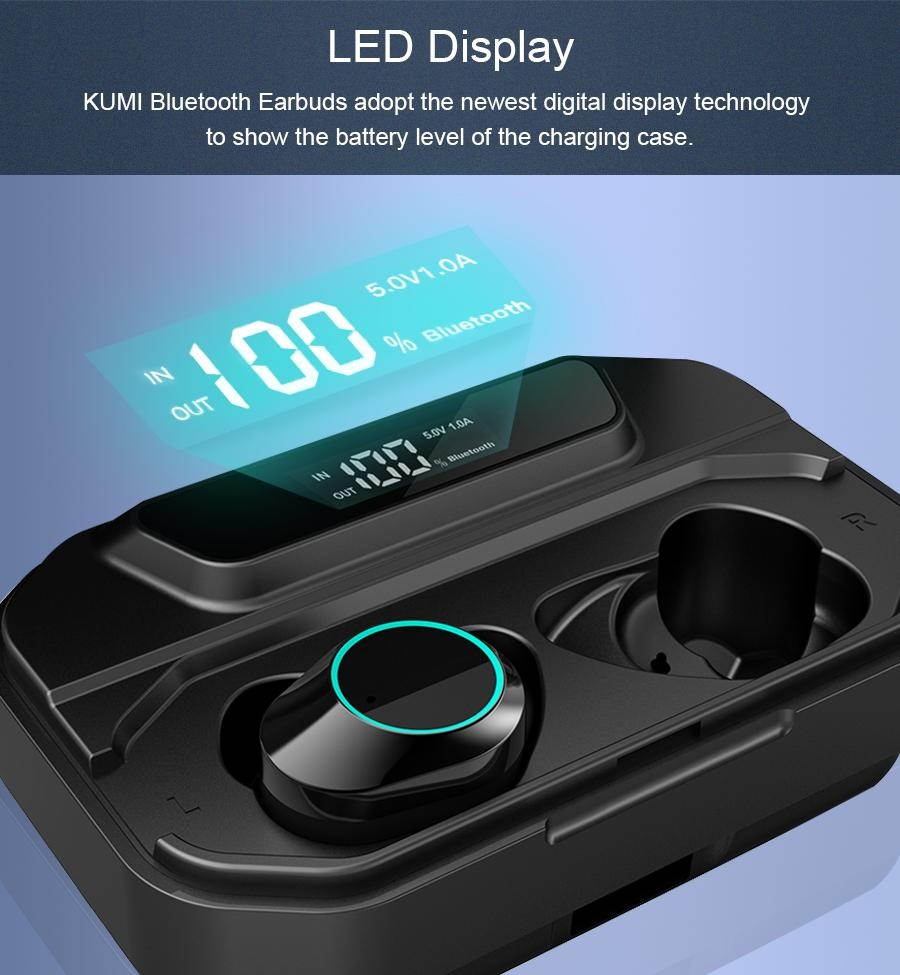 Earbuds adpopt the newest digital display technology to show the bat tery level of the charging case.