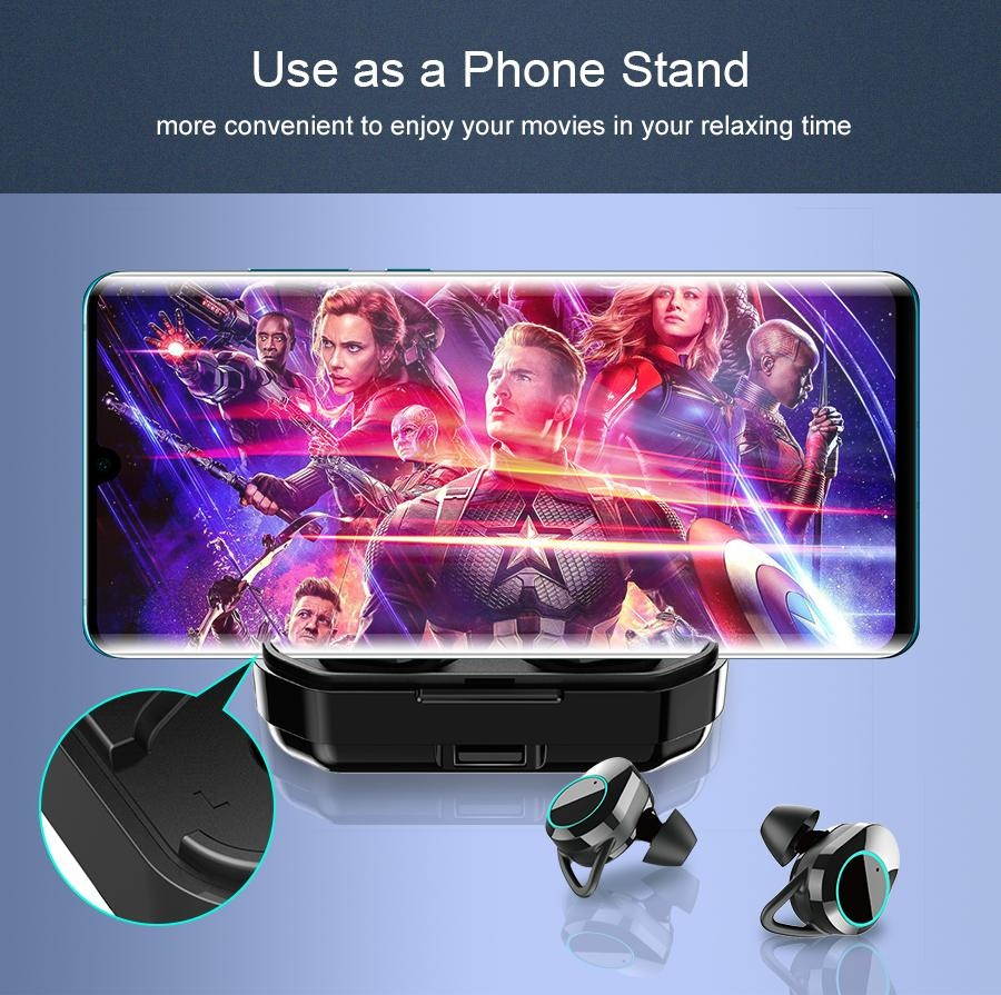 60mAh bat tery in each headphone ensures 3-4 hours of working time. Charged automatically in the 3300mAh charging box which enables headset charging for about5-6times.