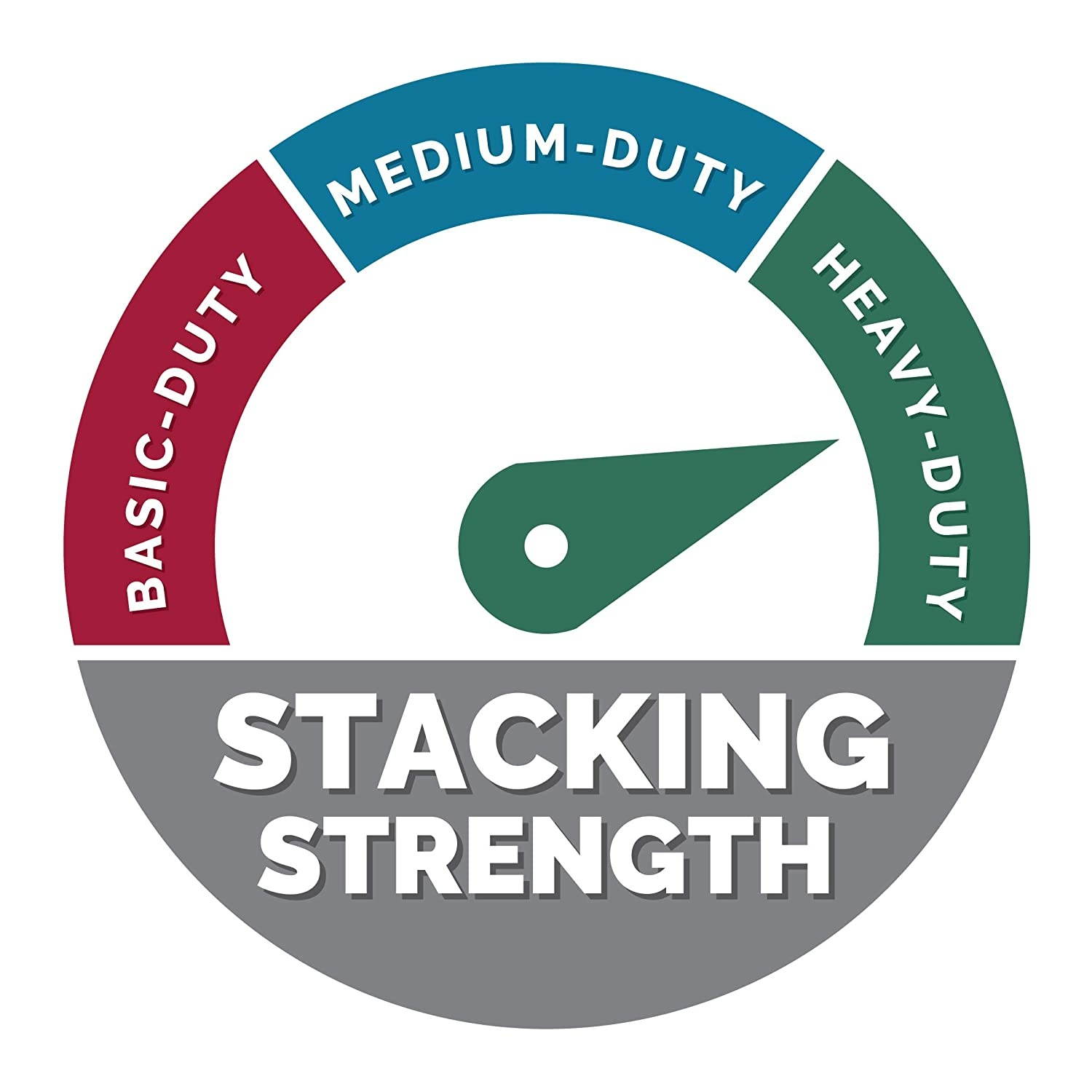 - Medium-duty box offers 25% greater stacking strength than other brands.
