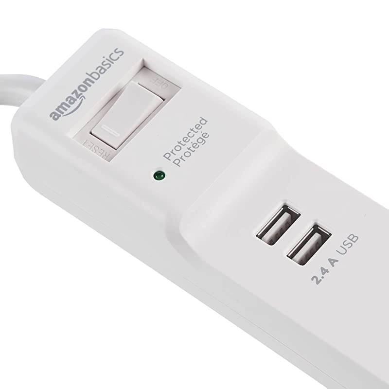 Basics 6-Outlet Surge Protector Power Strip with 2 USB Ports - 1000 Joule, White
