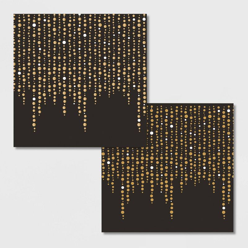 Each Gold Beading Cocktail Party Kit by Elise contains: 24 Black and Gold Foil Rectangular Paper Plates by Elise (9") and 48 Black and Glittering Gold Foil Dots Cocktail Napkins by Elise (5"). Go glam at your next celebration with help from our Gold Beading Cocktail Party Kit by Elise. The included plates feature a stunning rectangular shape, perfect for small bites, and a gorgeous, duel-tone look with inky black and metallic gold. The cocktail napkins feature a spray of metallic gold beading on a black background. This kit is perfect for hosting any celebratory cocktail hour. Simply pair with coordinating party supplies and invite everyone over!
