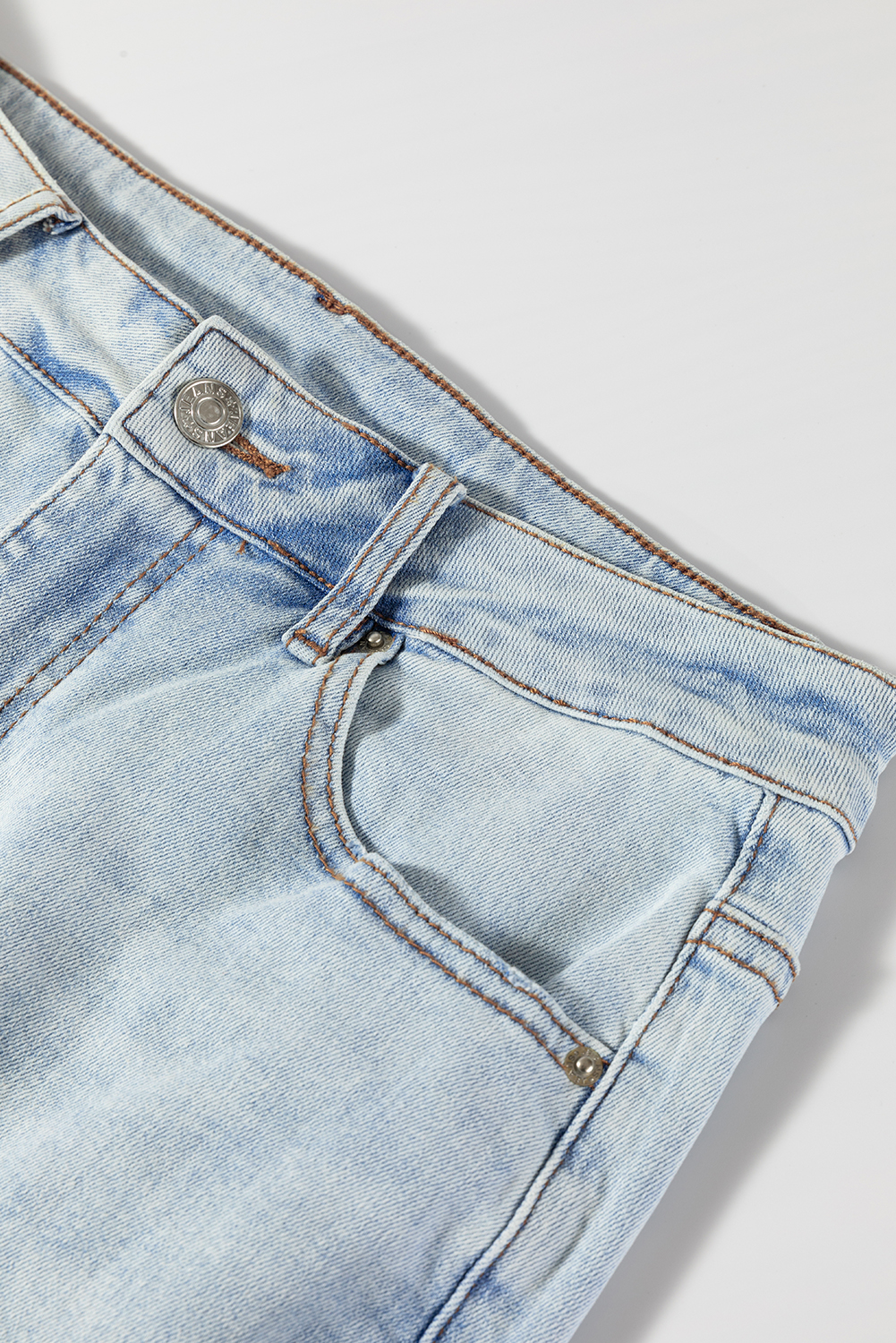Classic light wash denim makes it easy to style versatile outfits.