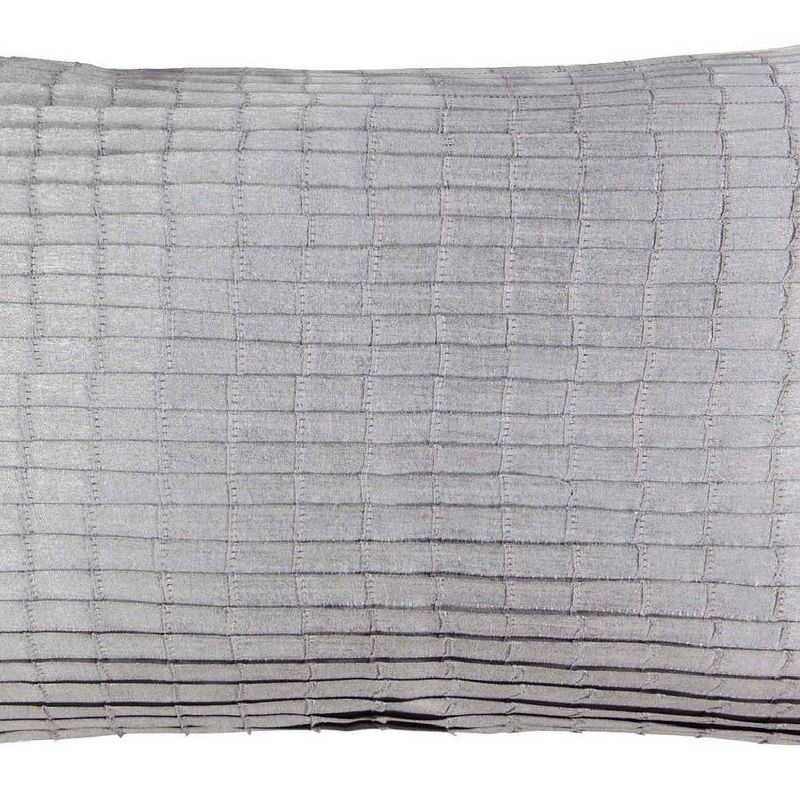 Bring elegant tranquility into your bedroom and home with the Beautyrest Henriette pleated pillow. This stylish accessory pillow features an all over horizontal pleating in muted tones. The pleating is on the face only with a solid reverse. The pillow measures 12 inches x 22 inches and has a hidden zipper closure. Insert is included. The Beautyrest Henriette pleated pillow is 100% Polyester. Spot clean only. Coordinating Henriette bedding and accessories are available and are sold separately.