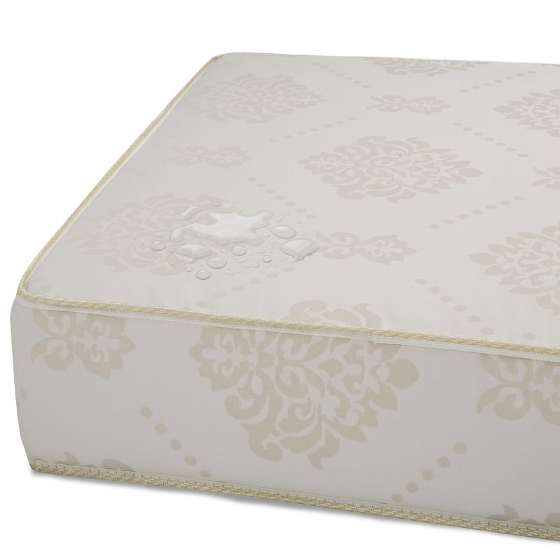 • Waterproof soft woven cover for easy clean up | Square corners create a secure fit in the crib | Dimensions 52" x 27.5"< 6"