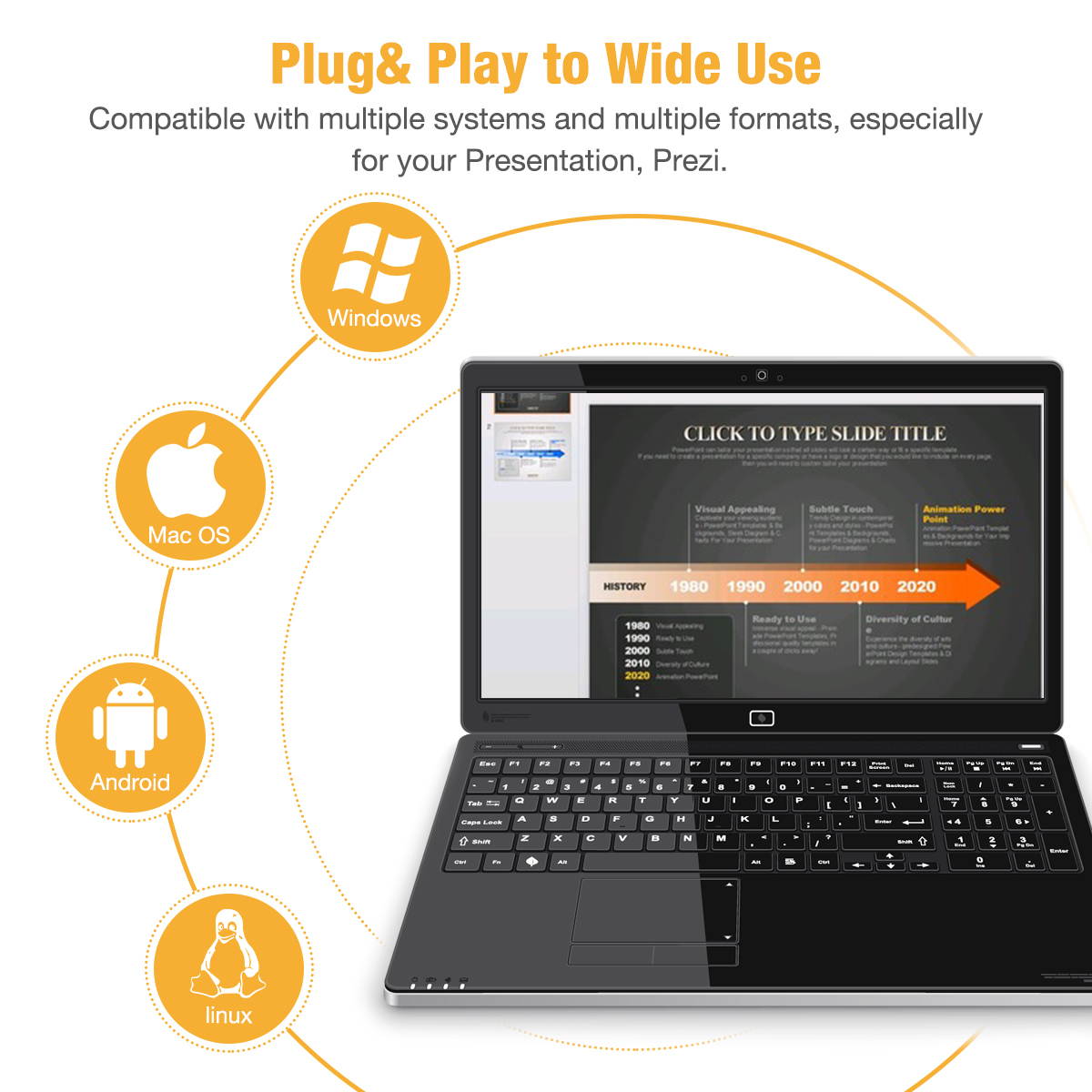 Widely Applicable-- Presentation remote supports systems: Windows 2003/XP/Vista/7/8/10, Mac OS, Linux, Android; Remote clicker for presentation supports software: PowerPoint, iWork (Keynote & Numbers & Pages), Prezi, MS Word, Excel, ACDSee, Website, etc.(Not for Google Slides)