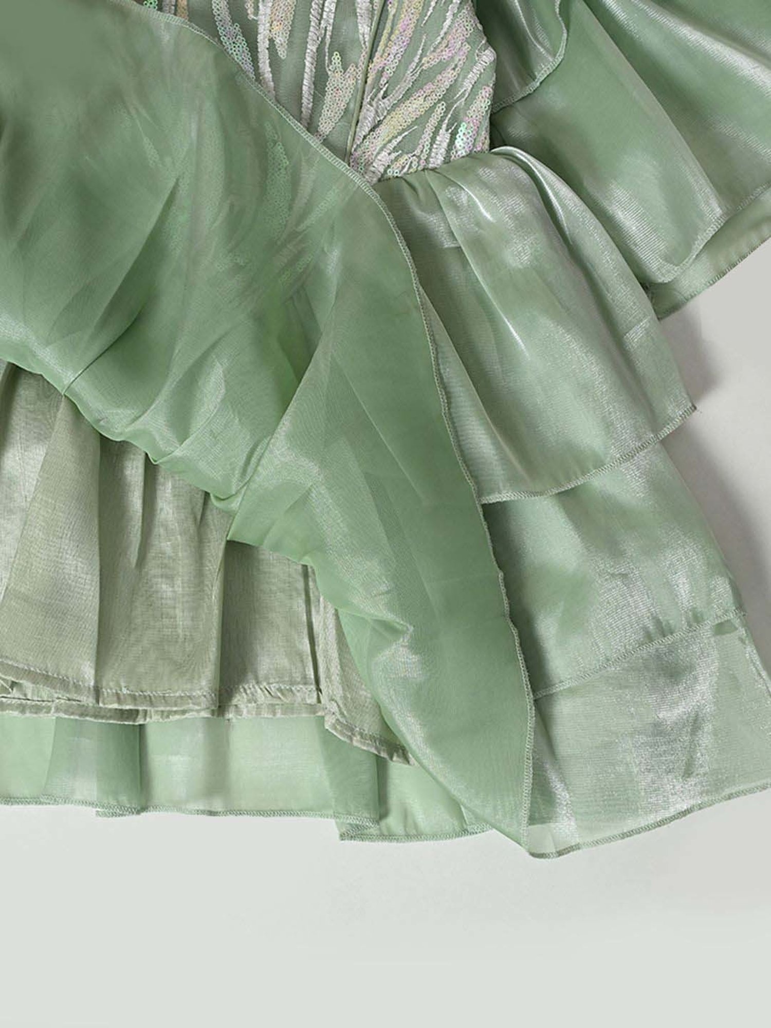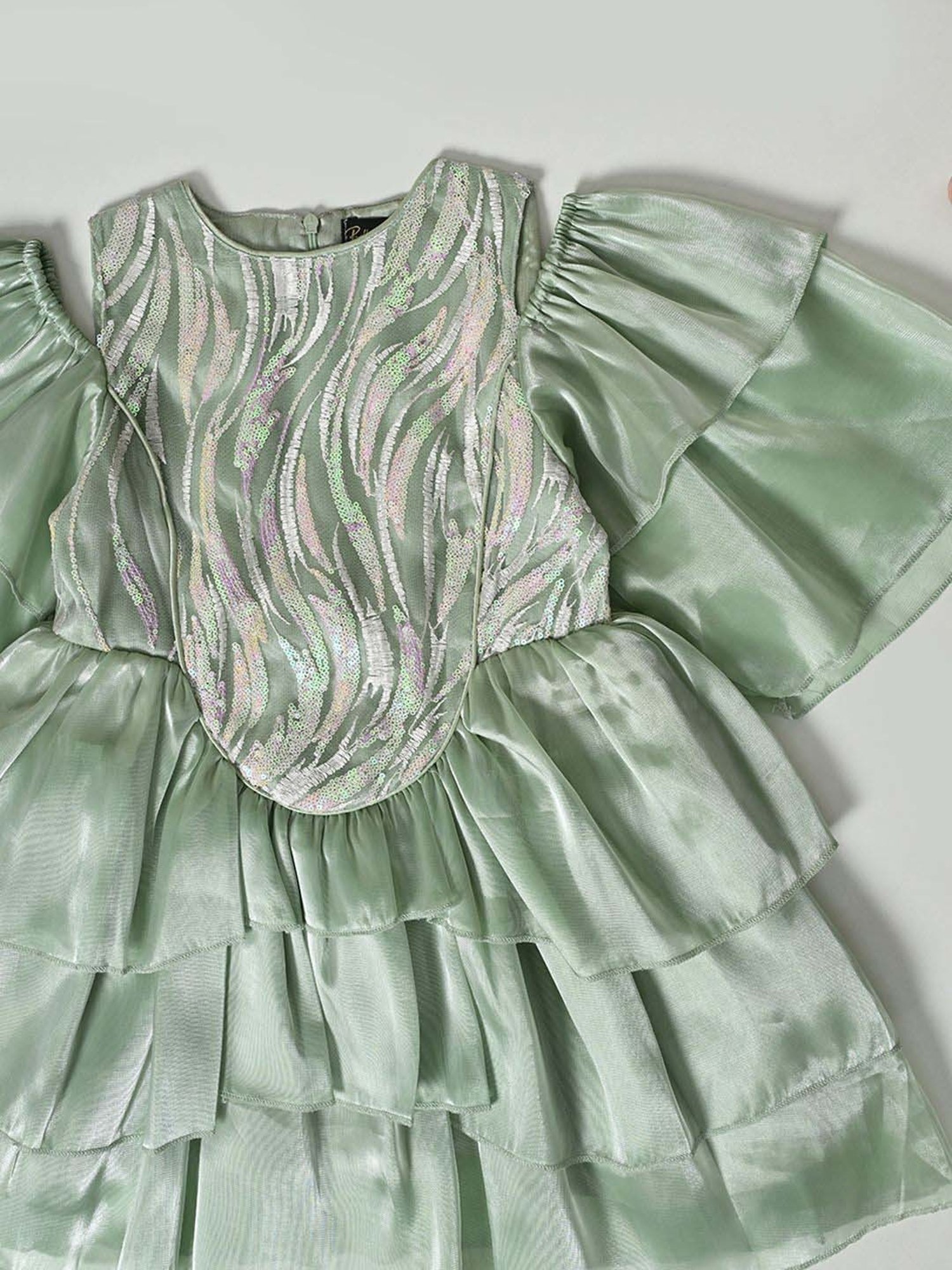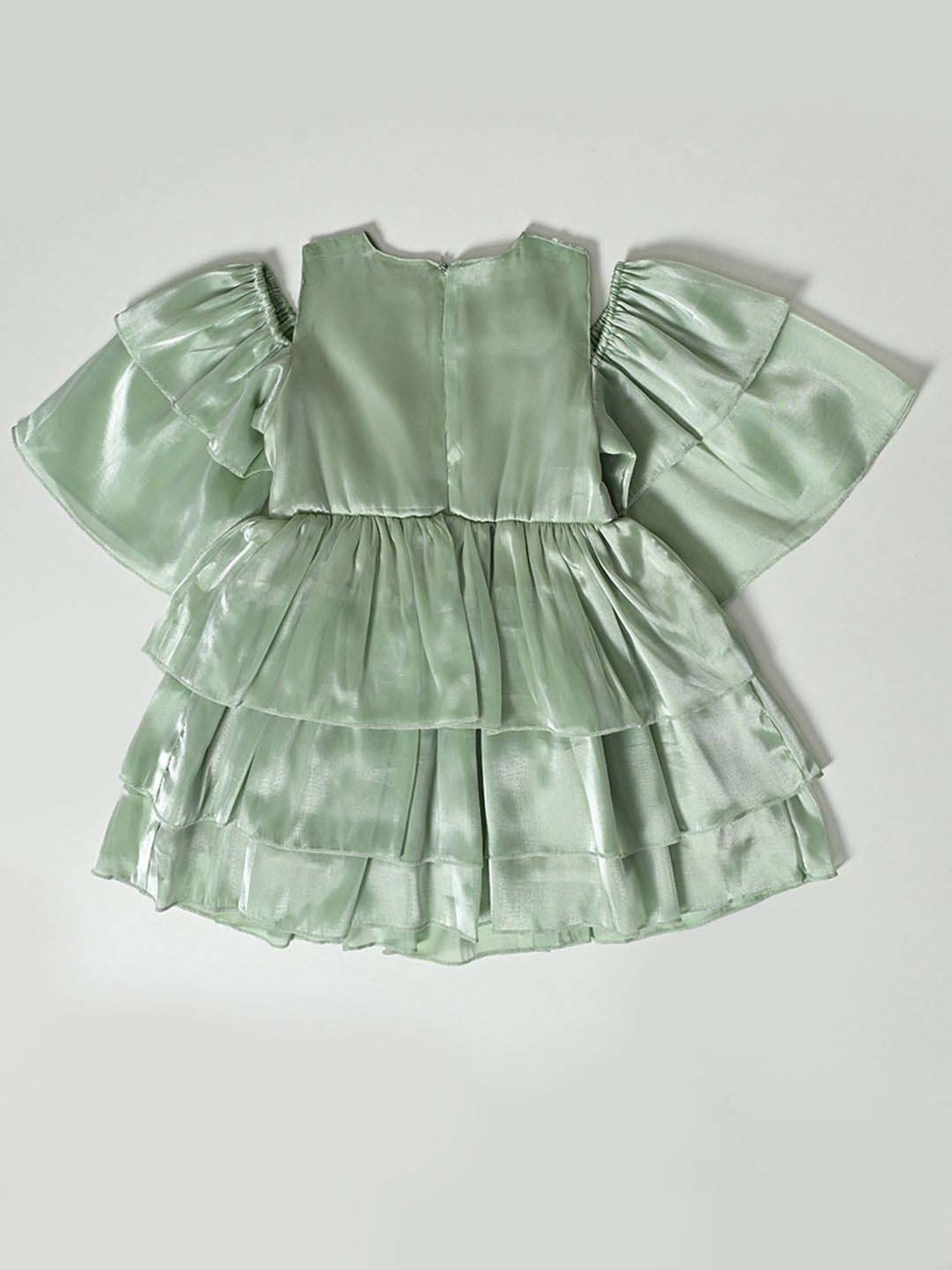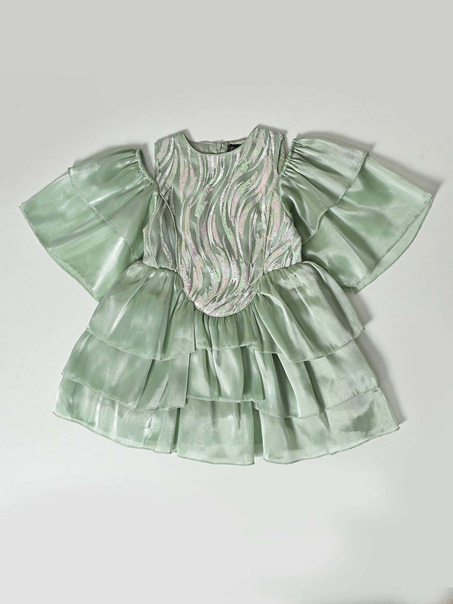 Deck up your little girls wardrobe with this green regular bella moda kids green self pattern dress from Bella Moda. Crafted using premium quality polyester fabric, it will be very soft to the skin. The round neck adds to its appeal. Flaunting half sleeves, it will surely keep you updated with the latest trend. The self pattern renders it fashionable.