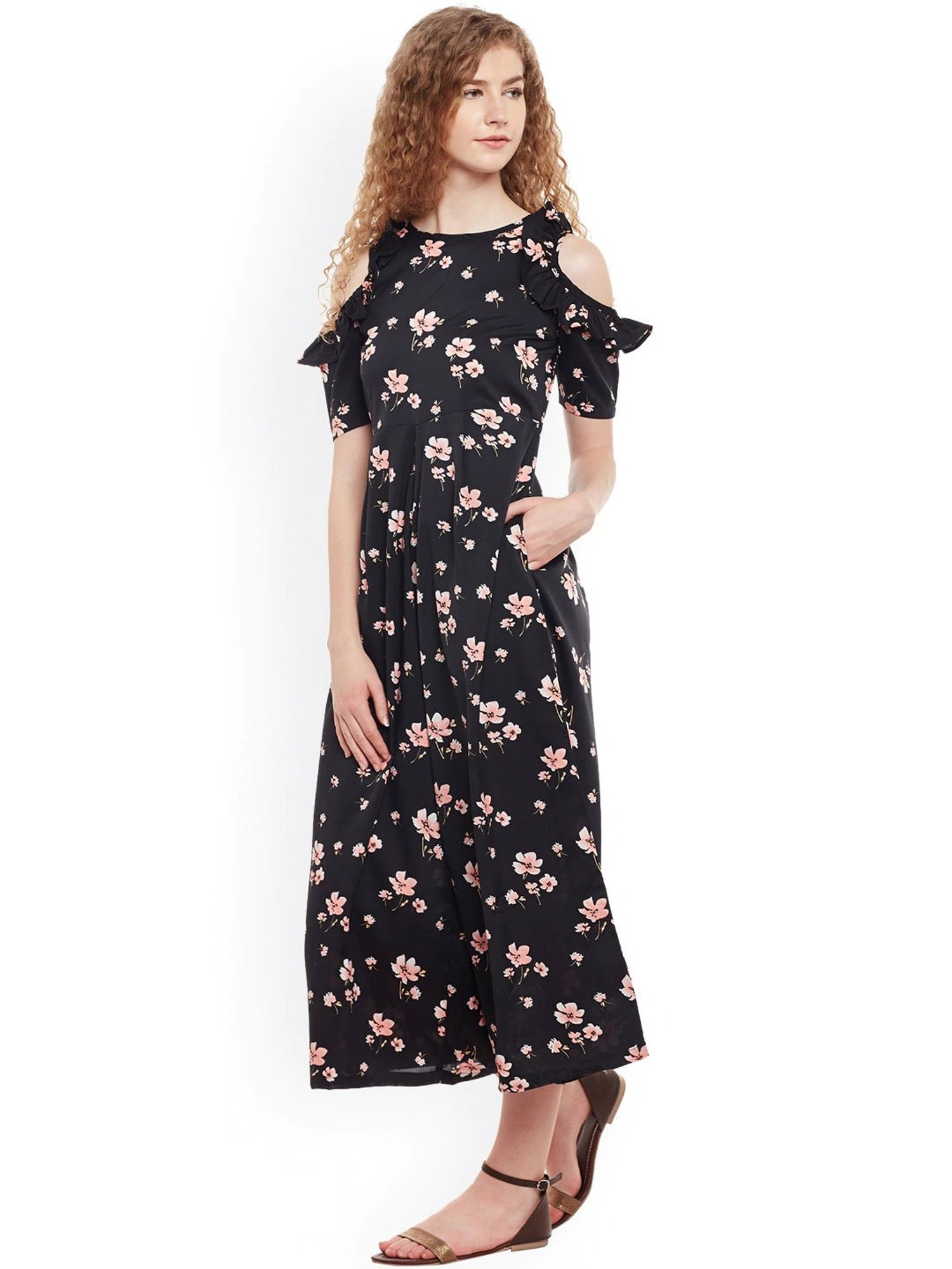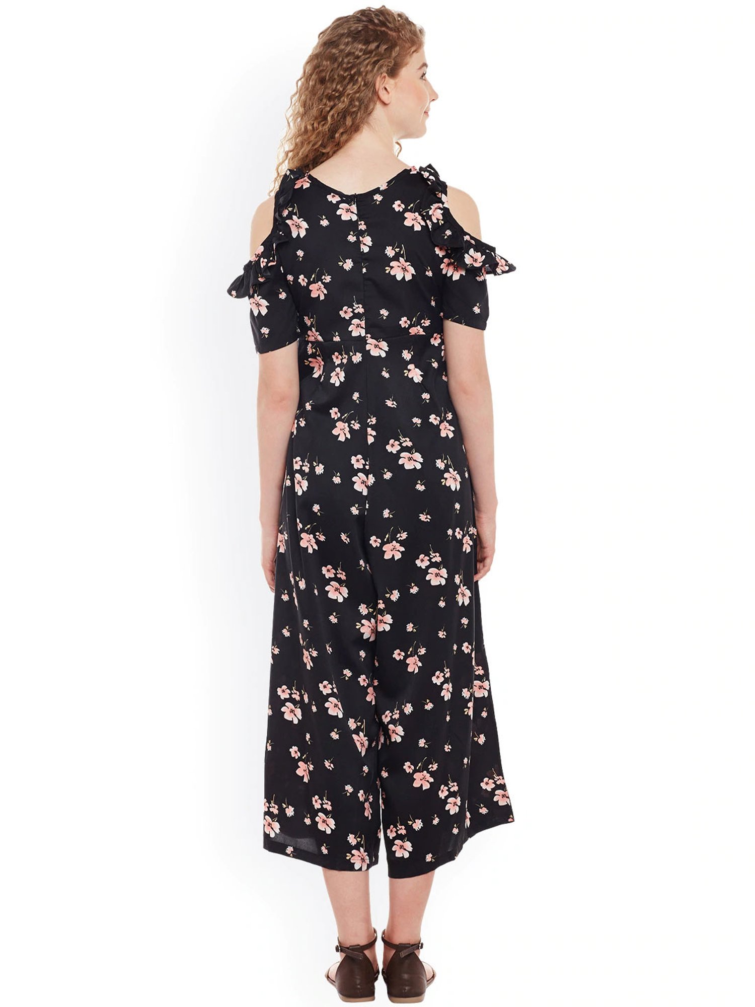 Add twist spunk to your wardrobe with this pair of black jumpsuit from Belle Fille. They come with round neck, short sleeves and floral print. Moreover, they are made from high quality fabric which is comfortable for all day long. Style these jumpsuit with a pair of wedges while going for any casual occasion.