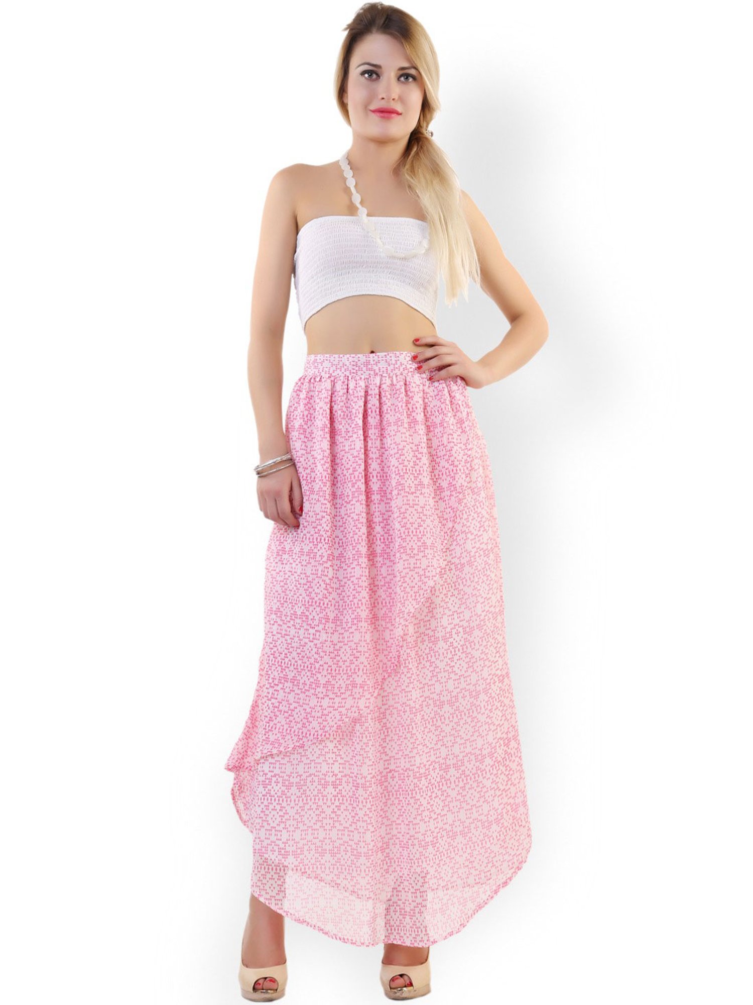 Add a contemporary edge to your look with this pink skirt from Belle Fille. Made from high quality fabric, this printed pattern maxi skirt will keep you sweat free all day long. Charm the world by coordinating this skirt with a top and strappy flats.