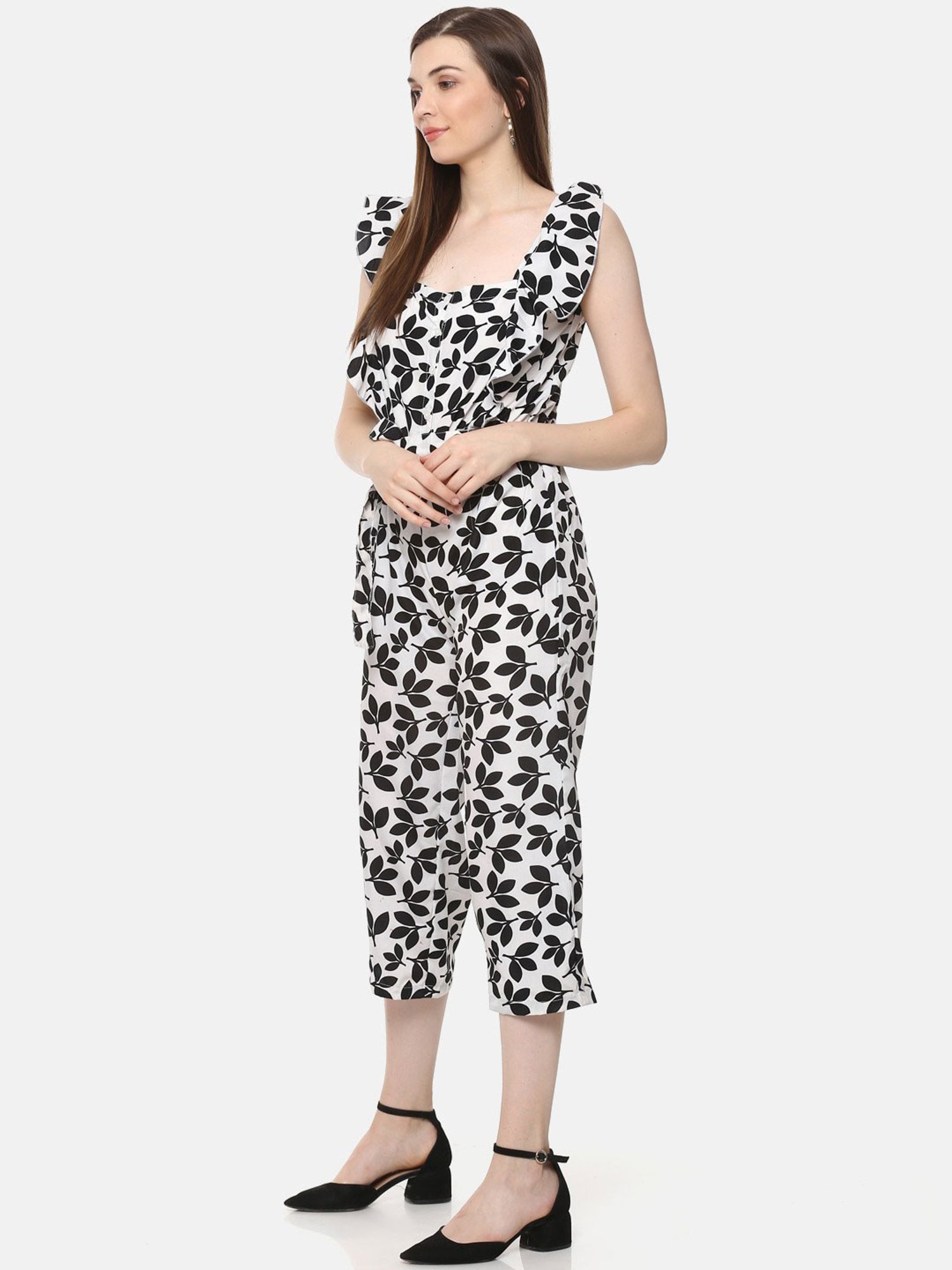 Add versatile pieces to your everyday repertoire with this pair of white and black jumpsuit from Belle Fille. Crafted from a high quality fabric they will provide a soft touch against your skin. Besides, they features a square neck and printed pattern that renders it trendy and further gives it some edge. Pair it with heeled shoes for a charming look.
