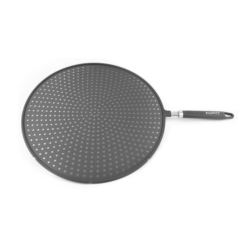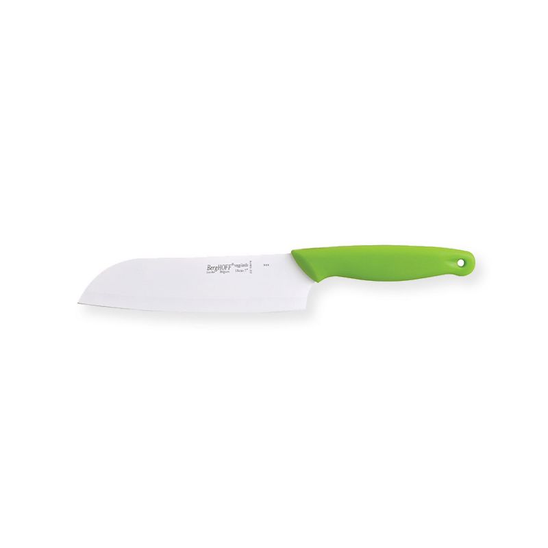 Set Includes: Stir-fry pan, Splatter screen, Skimmer and Veggie knife. The pans cast aluminum body for fast and even heat distribution. Ceramic non-stick coating compatible for Gas, Electric, Hallogen and Vitro-Ceramic stovetops. Protect not only yourself, but your kitchen from splatters - the BergHOFF silicone splatter screen is an ideal staple for any kitchen. Not only does it allow for steam and air to release while cooking, but you can also drain, strain, and rinse foods from your pots, bowls, and pans! Stay-cool non-slip grip handle, for effortless control. 13" diameter fits most pots. The defined blade designed for quick and efficient drainage when lifting fried or delicate foods. The ideal knife for food preparation. Effortless slicing, perfect for straight cuts of fruits, vegetables, and boneless meats. Extremely lightweight and perfectly balanced. Hygienic, stain-proof, and easy to clean. Ceramic knives stay sharper significantly longer than other types of blades.