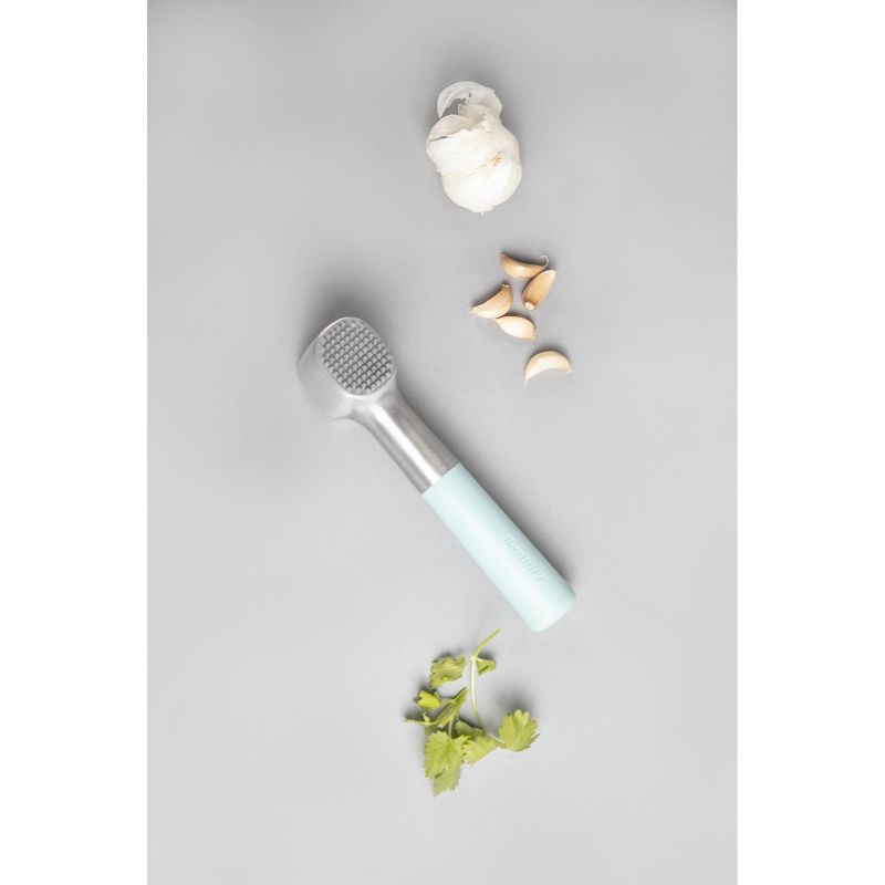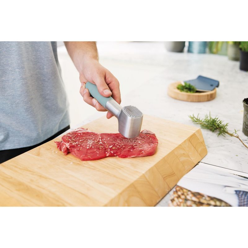 This stylish meat hammer comes with two different sides: a rather smooth end for flattening meats and poultry, and the other end with "teeth" is used for tenderizing meats. Also great to crush garlic and nuts.