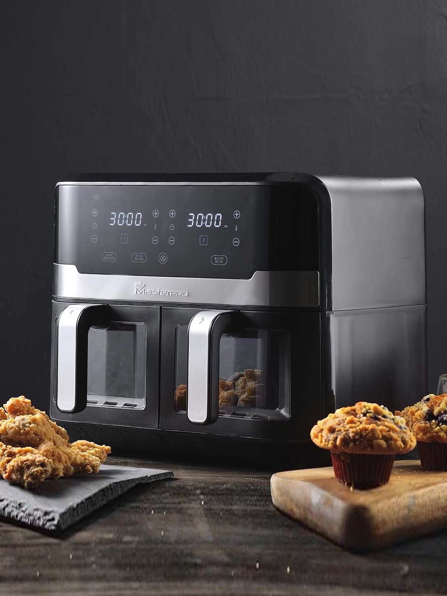 Amplify your kitchen storage and essentials with this set of 1 2400w air fryers with dual transparent nonstick buckets exclusively from Bergner. Crafted with high-quality stainless steel with a capacity of 9000 ml, this collection ensures durability and style, enhancing both functionality and aesthetics in your culinary space. Experience the perfect blend of practicality and elegance, making meal preparation a delightful and organized affair.