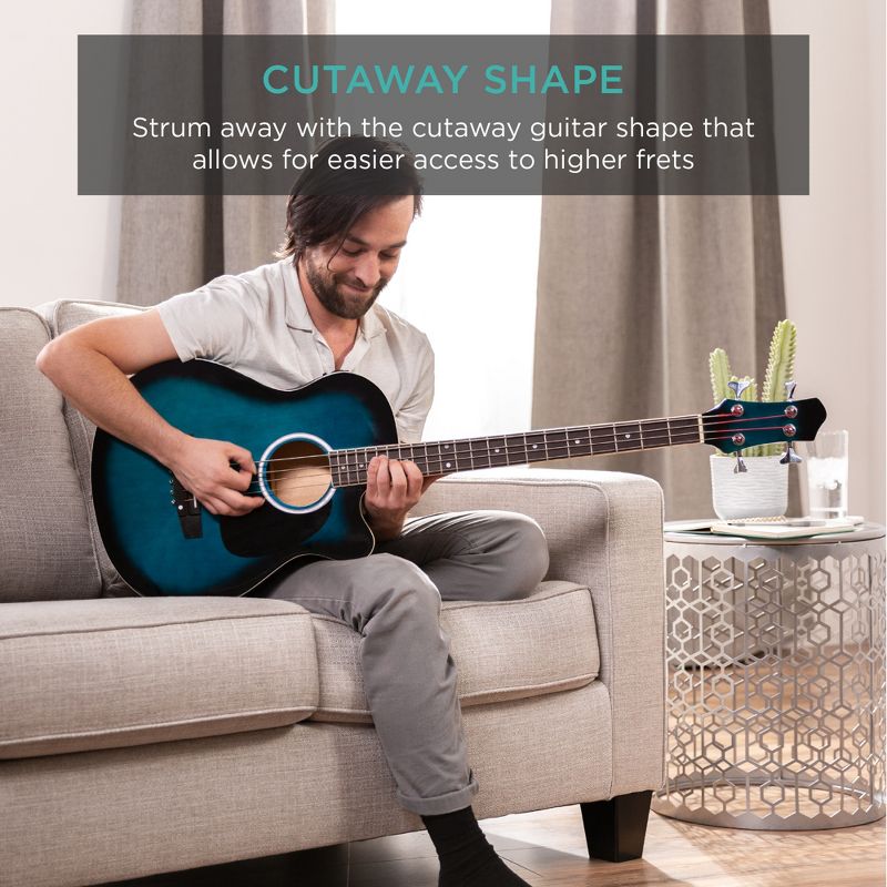 Enjoy the rich acoustic sound produced by the classical, natural wood body. This Full-Size Acoustic-Electric Bass guitar incorporates a 4 band equalizer, pre amp, and volume control to balance sound and resonance. The cutaway design, combined with the solid wood body and other quality materials promises a consistent musical experience. Strum away with the cutaway guitar shape that allows for easier access to higher frets. The attractive design is complemented by its glossy finish and durable lacquer and covered with a clear coating for an aesthetic appeal that keeps the bass looking brand new over the years. Play the perfect tune when you use the chrome diecast tuners to adjust your pitch. The chrome knobs, rosewood fretboard, and adjustable truss rod make sure you always play YOUR sound.