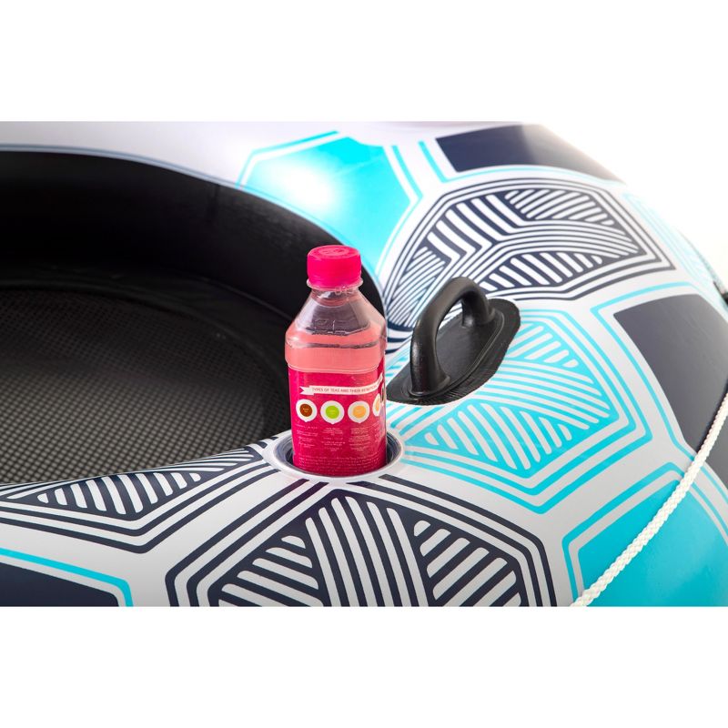This river inflatable is made of 18-gauge pre-tested vinyl that stays strong during frequent use and won't let you down. The mesh bottom and built-in backrest delivers soothing comfort and lets you cool off while giving your body the support you need. This inflatable tube has heavy-duty handles and an all-around grab rope with built-in grommets that provide easy transport to and from the water. Even better, this inflatable is easy to inflate with a screw-valve that will allow you to be on the water in no time. This 1-person float includes 2 cup holders to keep your favorite beverage within easy reach.