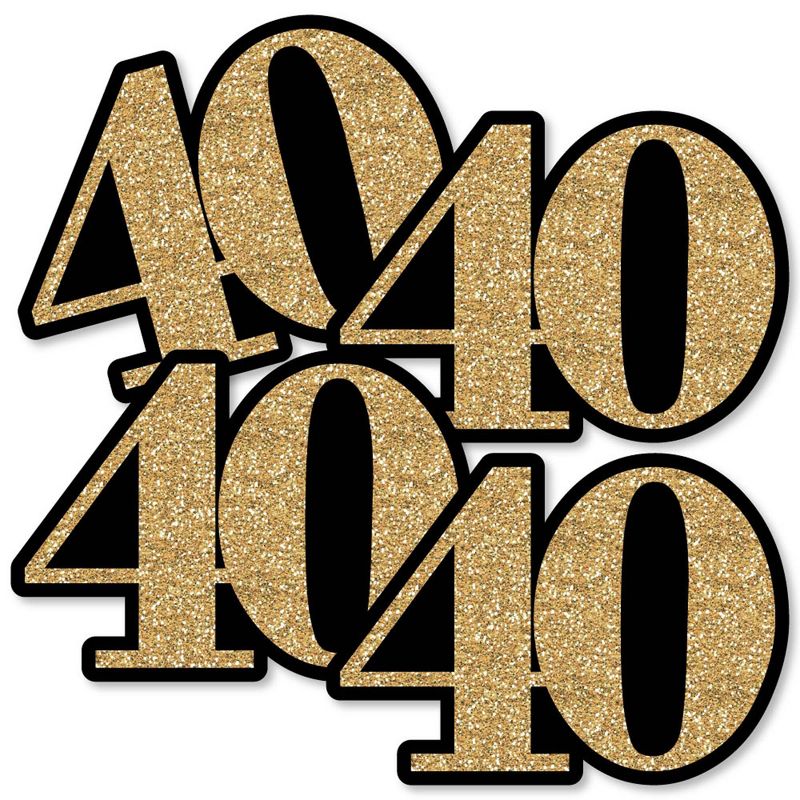 Adult 40th Birthday - Gold DIY Party Essential Kit INCLUDES 20 extra-large #40 shaped cut outs - Great for bringing all your DIY birthday party ideas to life! DIY PARTY SUPPLIES: Adult 40th Birthday - Gold party essentials include 20 large cut outs in #40 shapes that coordinate with the gold milestone party theme. Set of 20 birthday shapes SIZE 20 #40 shapes 7" x 5". The unique design and large size makes these black and gold party decorations an impressive addition to any birthday party. BIRTHDAY PARTY DECORATIONS: Adult 40th Birthday - Gold DIY party essentials are printed with art on both sides, so they are perfect for centerpieces or hanging decorations. Hole-punch them and string together as a birthday party banner, or hang individually as ceiling decorations. Adult 40th Birthday - Gold large shaped cut outs will make a statement however you choose to use them. HIGH-QUALITY PARTY SUPPLIES: Adult 40th Birthday - Gold DIY Party essentials are professionally printed on heavy-duty cardstock paper with a photo-like shine. They are individually inspected and carefully packaged by hand. Birthday party essentials will arrive ready to use in all of your creative DIY party ideas! MADE IN THE USA: Adult 40th Birthday - Gold - Decorations DIY Party Essentials are designed and manufactured at our Wisconsin facility using materials that are Made in the USA. Adult 40th Birthday - Gold party essentials use a No-Mess Glitter Print: Our DIY party supplies are designed with a printed image of glitter, eliminating glitter flake while maximizing bling effect!