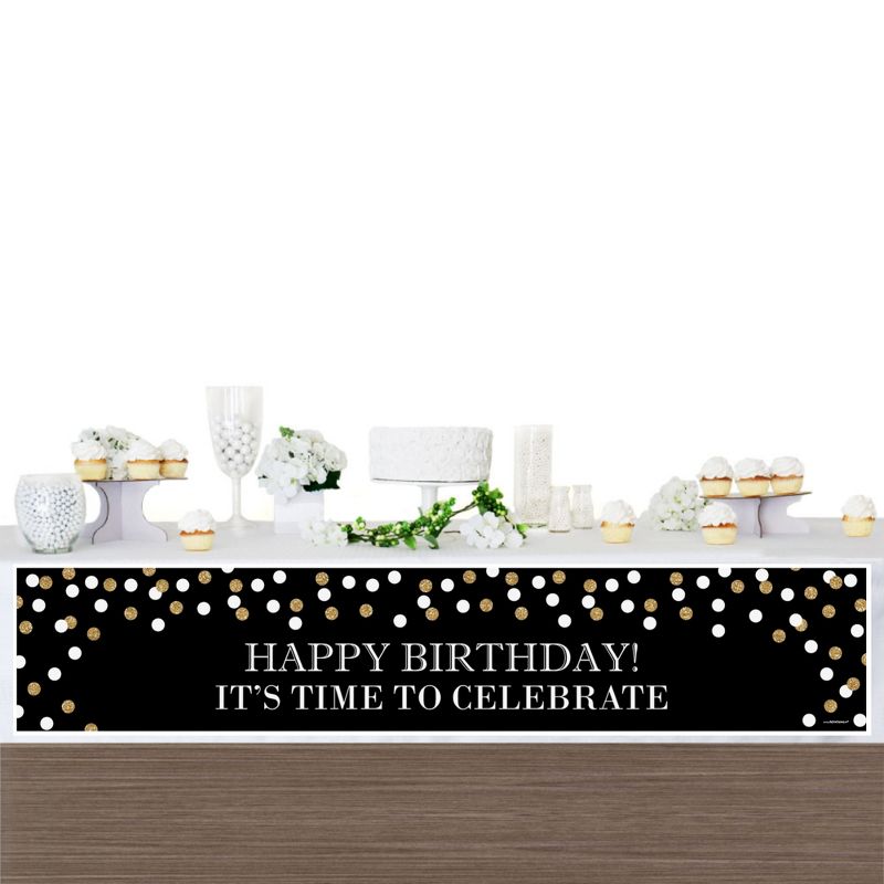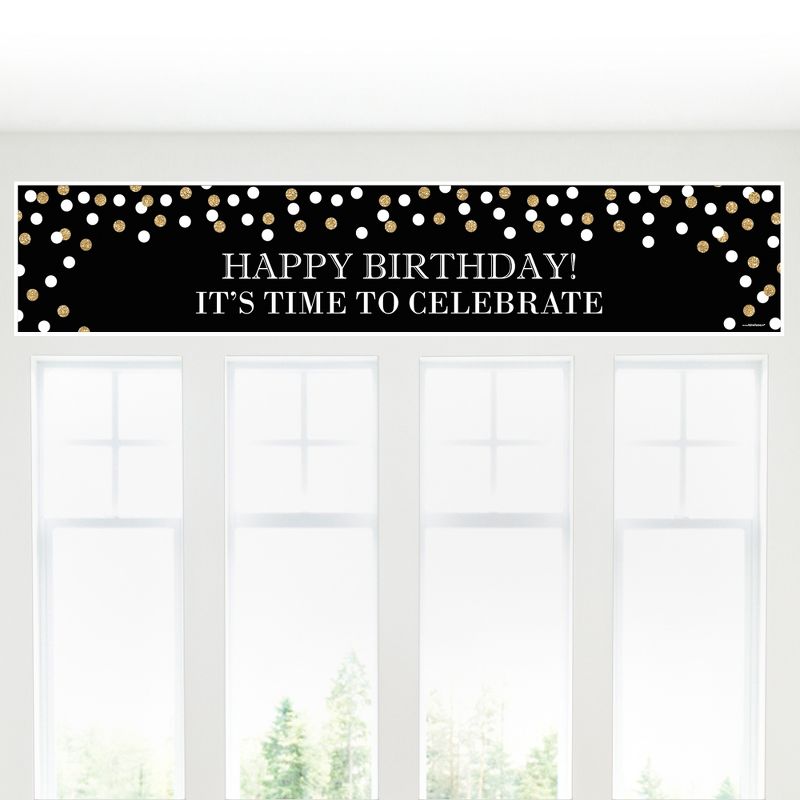 Adult Happy Birthday - Gold Birthday Banner is an impressive birthday decoration for your milestone party. SIZE: Adult Happy Birthday - Gold birthday banner measures 1 foot by 5 feet. BIRTHDAY DECORATIONS: An Adult Happy Birthday - Gold Birthday Banner is an easy way to decorate for your party and bring your gold theme to life. Hang at the entrance of your birthday, over the food table or candy buffet, at the gift table or behind the dining table. Adult Happy Birthday - Gold Birthday Banners are also great when displayed outdoors to welcome all of your birthday party guests as they arrive. PREMIUM BIRTHDAY SUPPLIES: Adult Happy Birthday - Gold Birthday Banner is professionally printed on premium-grade satin paper with a photo-like shine. Each banner is individually inspected then carefully packaged by hand and rolled into a protective sleeve. All birthday banners INCLUDE non-marking adhesive wall mounts for easy display. MADE IN THE USA: Adult Happy Birthday - Gold - Birthday Decorations Party Banner is designed and manufactured at our Wisconsin facility using materials that are Made in the USA. Adult Happy Birthday - Gold Birthday Banners use a No-Mess Glitter Print: Our banners are designed with a printed image of glitter, eliminating glitter flake while maximizing bling effect!