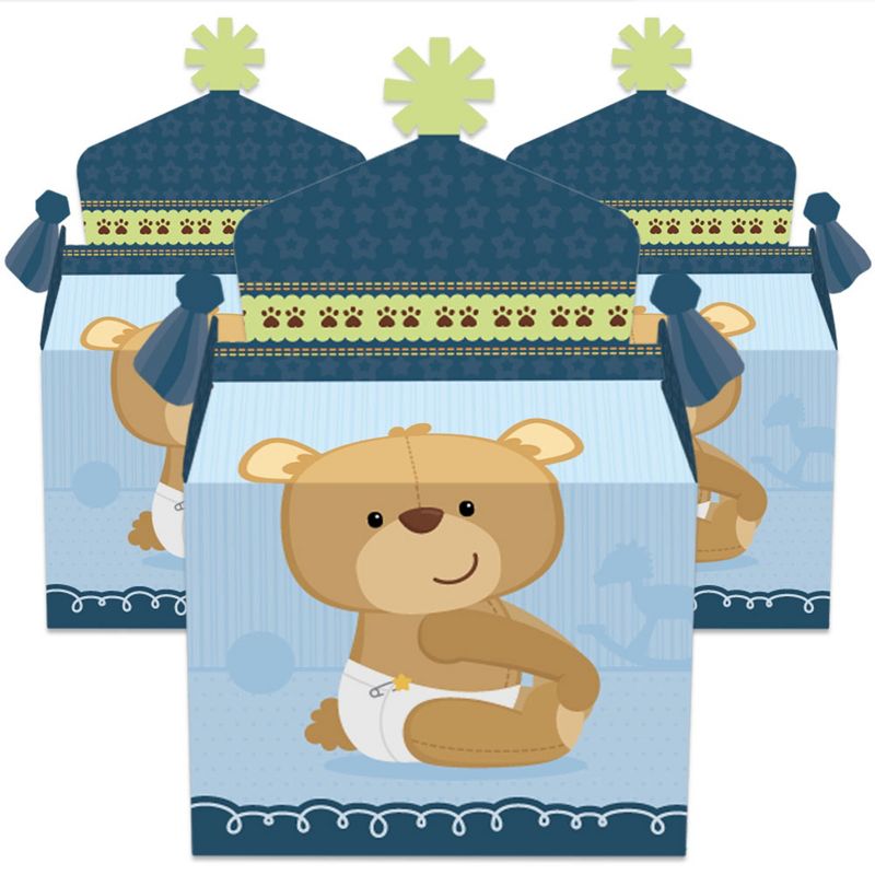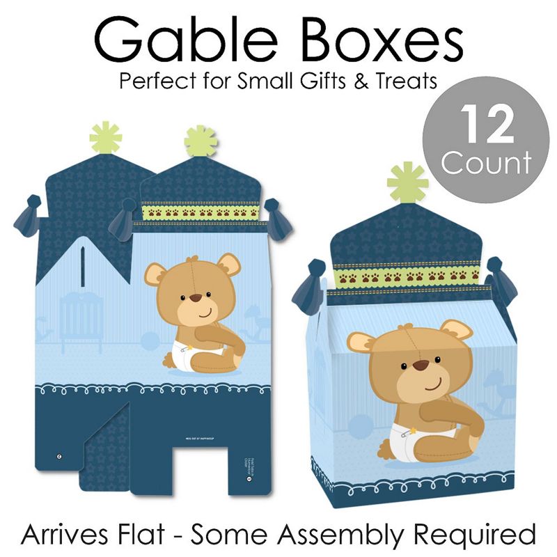 Gable Boxes INCLUDE: 12 Baby Boy Teddy Bear-themed goodie party favor boxes. Each box SIZE measures 4.25 inches length x 3 inches width x 7.75 inches height. Gable favor boxes are ideal for small gifts and treats that are under 3.5 inches tall (height for storing items in closed box). FUN PARTY FAVORS: Use gable boxes for a unique party gift at any celebration party. This small, closed favor box can be filled with baked goodies, party trinkets, or thank you gifts. Party guests will have fun with the mystery of what each party loot box will contain. PREMIUM PARTY SUPPLY: Gable treat boxes are professionally printed and double-sided on heavy-duty cardstock paper, with a photo-like shine. They are hand-folded, individually inspected, and then carefully packaged. SIMPLE ASSEMBLY: Baby Boy Teddy Bear gable boxes will arrive flat. Allow time for the required assembly of each box. Gable boxes have crease lines and numbered tabs for easy folding. Packaging will include assembly instructions. MADE IN THE USA: Baby Boy Teddy Bear Baby Shower goodie gable boxes are designed and manufactured at our Wisconsin facility using materials that are Made in the USA.
