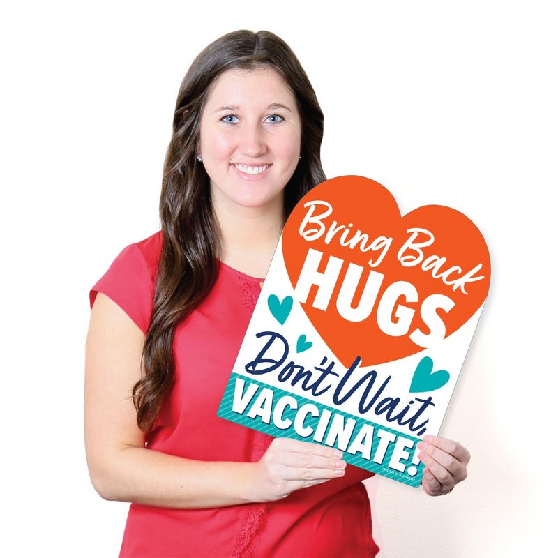 • Sign Reads: "Bring Back Hugs Don't Wait, Vaccinate!"