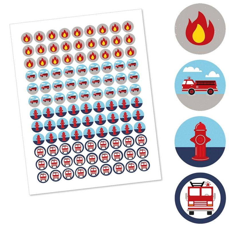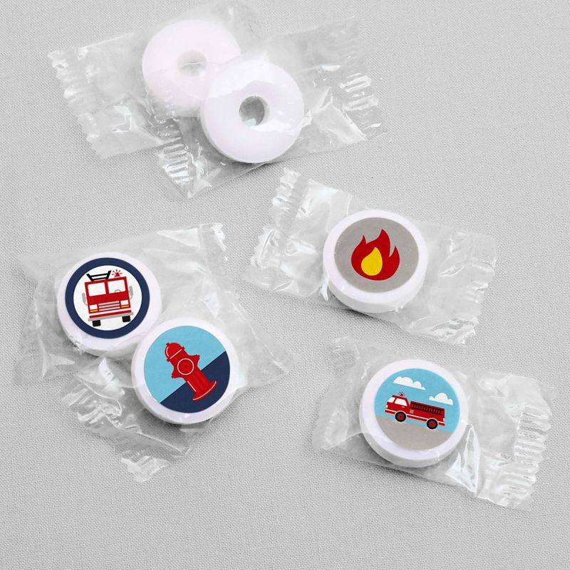 Fired Up Fire Truck Round Candy Favor Labels INCLUDES 108 round candy stickers - perfect for styling adorable fire hydrant baby shower or birthday party candy favors. Round candy labels will fit a variety of small candies with a flat, round bottom, such as chocolate Hershey's® Kisses®, wrapped peppermints or gold-wrapped caramel candies. Fired Up Fire Truck small, round candy stickers MEASURE .75 inches diameter and will quickly add a personal touch to all your sweet treats at the party. EASY PARTY DECORATIONS: Fired Up Fire Truck round candy sticker labels are an easy party decoration to add to your list of party supplies. Scatter decorated candies down your dining tables, package in small gift bags as a party favor or display in a pretty bowl at your candy buffet. Get creative with your firetruck DIY baby shower or birthday party decoration ideas! PREMIUM PARTY SUPPLIES: Fired Up Fire Truck round candy labels are professionally printed on sticker paper with a photo-like shine. They are individually inspected and carefully packaged by hand. Simply attach each round candy sticker to your chosen candies. MADE IN THE USA: Fired Up Fire Truck - Baby Shower or Birthday Party Round Candy Sticker Favors are designed and manufactured at our Wisconsin facility using materials that are Made in the USA. Please Note: Candies are not included but are available at your local grocery store.