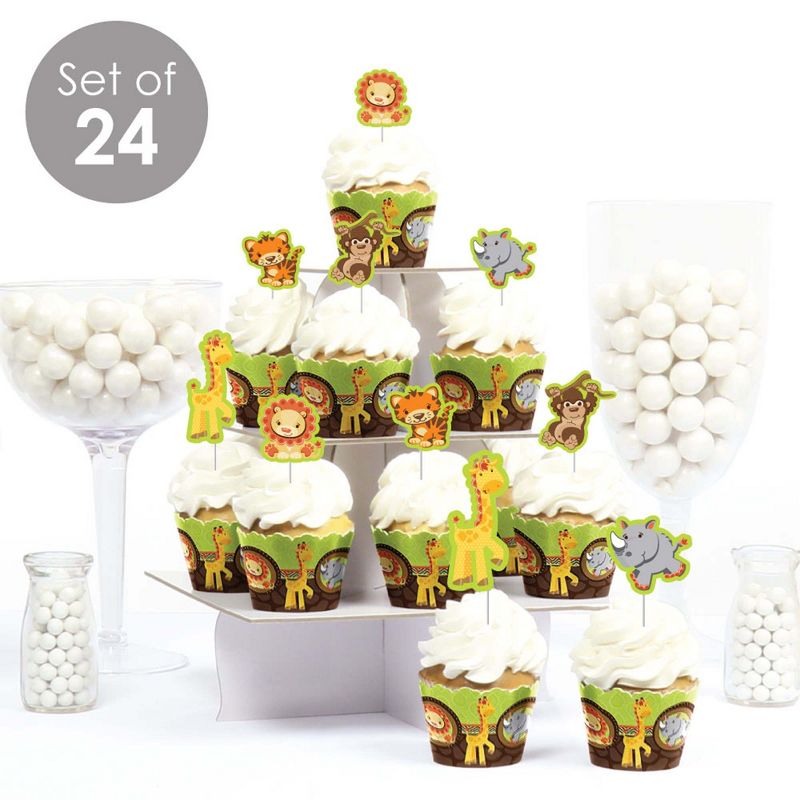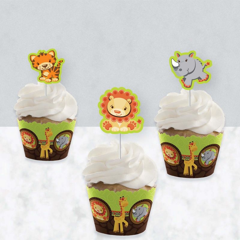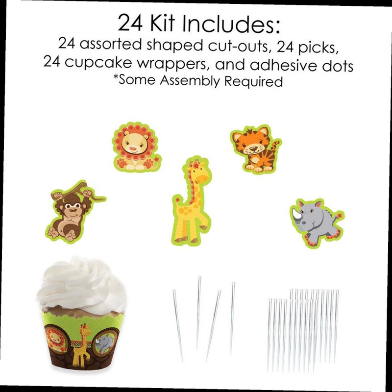Funfari - Fun Safari Jungle Cupcake Wrappers and Treat Picks Kit INCLUDES 24 assorted shaped paper cut-outs, 24 clear treat picks, 24 cupcake wrappers, and adhesive dots for easy assembly. DIY Funfari - Fun Safari Jungle cupcake decoration kit is perfect for any baby shower, birthday party. Plastic clear treat picks SIZE measure 4" tall and are packaged in a food-safe environment. Funfari - Fun Safari Jungle shaped paper cut-outs vary in size and coordinate well with pick size. Cupcake wrappers are cut with a decorative edge and adjust to fit cupcakes 1.75" - 2.5" Wide. Wrappers measure 1.75" Tall. Wrappers are meant for one-time-use only and should not be baked. EASY PARTY DECORATIONS: Funfari - Fun Safari Jungle Baby Shower or Birthday Party Cupcake Decoration Kit makes it easy to style a jungle animals theme party. Use the set of 24 to style the perfect dessert buffet or create impressive cupcake tower centerpieces. PREMIUM PARTY SUPPLIES: Clear treat picks are made of food-grade plastic and are packaged in a food-safe environment. The Funfari - Fun Safari Jungle paper cut-out toppers are professionally printed, double-sided on sturdy cardstock paper with themed art on one side and a coordinating pattern on the back. Cut-outs will quickly attach to the clear picks with included adhesive dots and then easily insert into your party appetizers or desserts. EASY ASSEMBLY INSTRUCTIONS INCLUDED: Clear treat picks and Funfari - Fun Safari Jungle shaped cut-outs and cupcake wrappers are packaged with easy assembly instructions.