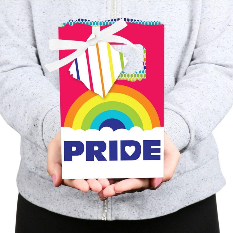 Love is Love - Gay Pride Favor Boxes INCLUDES 12 rainbow party favor bags, 12 gift tags and coordinating satin ribbon. Classic favor boxes are a party must-have. Rainbow theme party supplies are great for a LGBTQ Rainbow party. Love is Love - Gay Pride Favor Boxes SIZE 4.75 inches wide x 4.75 inches high x 2.25 inches deep (fillable inside space) with a total height of 7 inches, including the handle. The coordinating gift tags and ribbon makes these 12 gay pride party favor boxes a complete treat bag party kit that everyone will love. PARTY SUPPLIES: LGBTQ Rainbow party favor boxes will hold a variety of treats, prizes and party favors for your guests. Fill them with baked goodies, party trinkets or thank you gifts for adorable Love is Love - Gay Pride favors! PREMIUM PARTY FAVOR BOXES: Love is Love - Gay Pride favor boxes are professionally printed on heavy-duty cardstock paper with a photo-like shine. They are hand-folded and individually inspected, then carefully packaged. Favor boxes will arrive flat, partially assembled. Finishing assembly is required but it is easy. Once assembled, add the gift tag with the included ribbon for perfect party favors! MADE IN AMERICA: Love is Love - Gay Pride - LGBTQ Rainbow Party Favor Boxes are designed and manufactured at our Wisconsin facility.