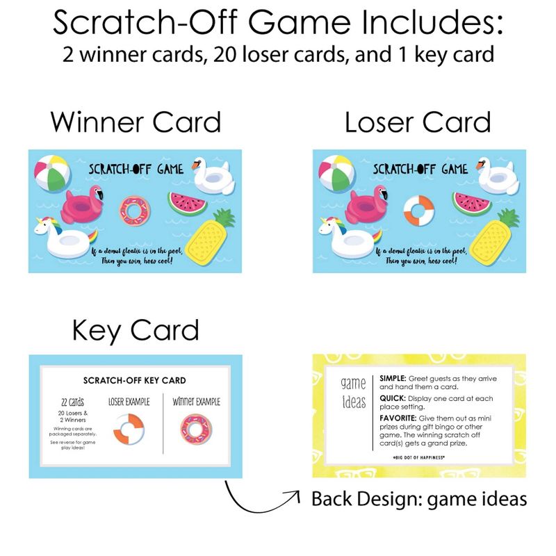 Make A Splash - Pool Party Scratch-Off Cards INCLUDES 22 summer swimming or birthday party game cards: 20 "loser" cards and 2 "winner" cards. FUN PARTY GAME: Make A Splash - Pool Party scratch-off cards will be enjoyed by summer swimming or birthday party guests of all ages. Each game card measures 2.75" tall x 4.75" wide. Winner and loser game cards are packaged separately so it is easy to pre-select the game winners if you choose. 3 WAYS TO PLAY: Simple - Greet guests as they arrive and hand them a scratch-off card. Quick - Display one scratch-off card at each place setting and have guests play before eating. Favorite - Give scratch-off cards out as mini prizes during other party games. The winning scratch off card(s) gets a grand prize. HIGH-QUALITY PARTY SUPPLIES: Make A Splash - Pool Party Scratch-Off Cards are professionally printed on heavy-duty cardstock paper with a photo-like shine. They are individually inspected and carefully packaged by hand, with winner cards and loser cards clearly marked. This fun summer swimming or birthday party game will arrive ready to use at your party. MADE IN THE USA: Make A Splash - Pool Party - Birthday Party Game Scratch Off Cards are designed and manufactured at our Wisconsin facility using materials that are Made in the USA.