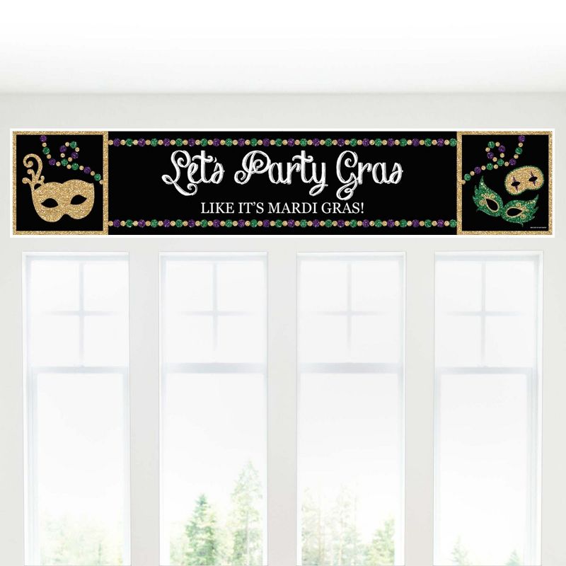 Masquerade Banner is an impressive Mardi Gras party decoration for your Fat Tuesday party theme. SIZE: Masquerade Mardi Gras party banner measures 1 foot by 5 feet. MARDI GRAS PARTY DECORATIONS: A Masquerade - Mardi Gras Party Banner is an easy way to decorate for your party and bring your Mardi Gras party theme to life. Hang at the entrance of your Mardi Gras party, over the food table or candy buffet, at the gift table or behind the head table. Masquerade banners are also great when displayed outdoors to welcome all your Mardi Gras party guests as they arrive. PREMIUM MARDI GRAS PARTY SUPPLIES: Masquerade Banner is professionally printed on premium-grade satin paper with a photo-like shine. Each banner is individually inspected then carefully packaged by hand and rolled into a protective sleeve. All Masquerade Mardi Gras party banners INCLUDE non-marking adhesive wall mounts for easy display. MADE IN THE USA: Mardi Gras - Masquerade Party Decorations Party Banner is designed and manufactured at our Wisconsin facility using materials that are Made in the USA. Mardi Gras Banners use a No-Mess Glitter Print: Our banners are designed with a printed image of glitter, eliminating glitter flake while maximizing bling effect!