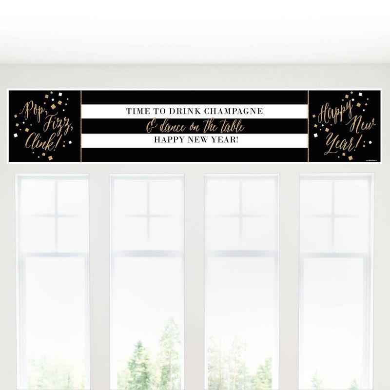 New Year's Eve - Gold Banner is an impressive pop, fizz, clink decoration for your New Year's Eve party. SIZE: New Year's Eve - Gold banner measures 1 foot by 5 feet. NEW YEAR'S EVE DECORATIONS: A New Year's Eve - Gold Banner is an easy way to decorate for your party and bring your gold theme to life. Hang at the entrance of your New Year's Eve, over the food table or candy buffet, at the gift table or behind the dinner table. New Year's Eve - Gold Banners are also great when displayed outdoors to welcome all of your party guests as they arrive. PREMIUM NEW YEAR'S EVE SUPPLIES: New Year's Eve - Gold Banner is professionally printed on premium-grade satin paper with a photo-like shine. Each banner is individually inspected then carefully packaged by hand and rolled into a protective sleeve. All New Year's Eve banners INCLUDE non-marking adhesive wall mounts for easy display. MADE IN THE USA: New Year's Eve - Gold - New Year's Eve Party Decorations Party Banner is designed and manufactured at our Wisconsin facility using materials that are Made in the USA. New Year's Eve - Gold Banners use a No-Mess Glitter Print: Our banners are designed with a printed image of glitter, eliminating glitter flake while maximizing bling effect!